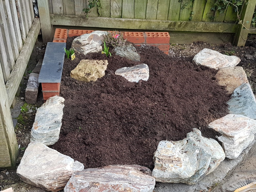 Well I did a PH test on the soil in about 6 areas, they all come out at 7, so I should be OK to grow most stuff, I had to do something to cover this old well, so I have started a rockery (any suggestions on the rock lay-outs) I have 4 more in the car! also I am making a bit of headway into the dividing border between me and next doors "Garden" or should i say jungle, I'm going to chop all the bramble back, then stick a good fence up, I have a greenhouse coming in the morning, and I'm afraid it's going on the flattest area, at the near to bottom of the garden, I would love suggestions from anyone, on what to get up and running in the greenhouse. Oh and AnniD, I am having a sleeper installed to bank up the soil, it's all go here, but I want it somewhere near for Summer.