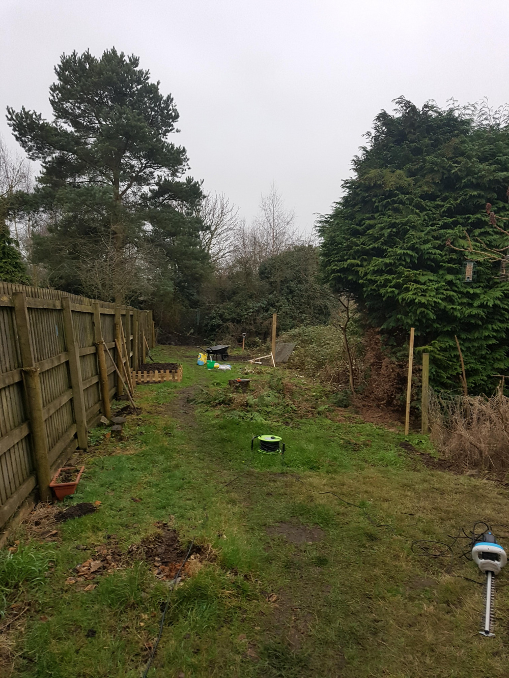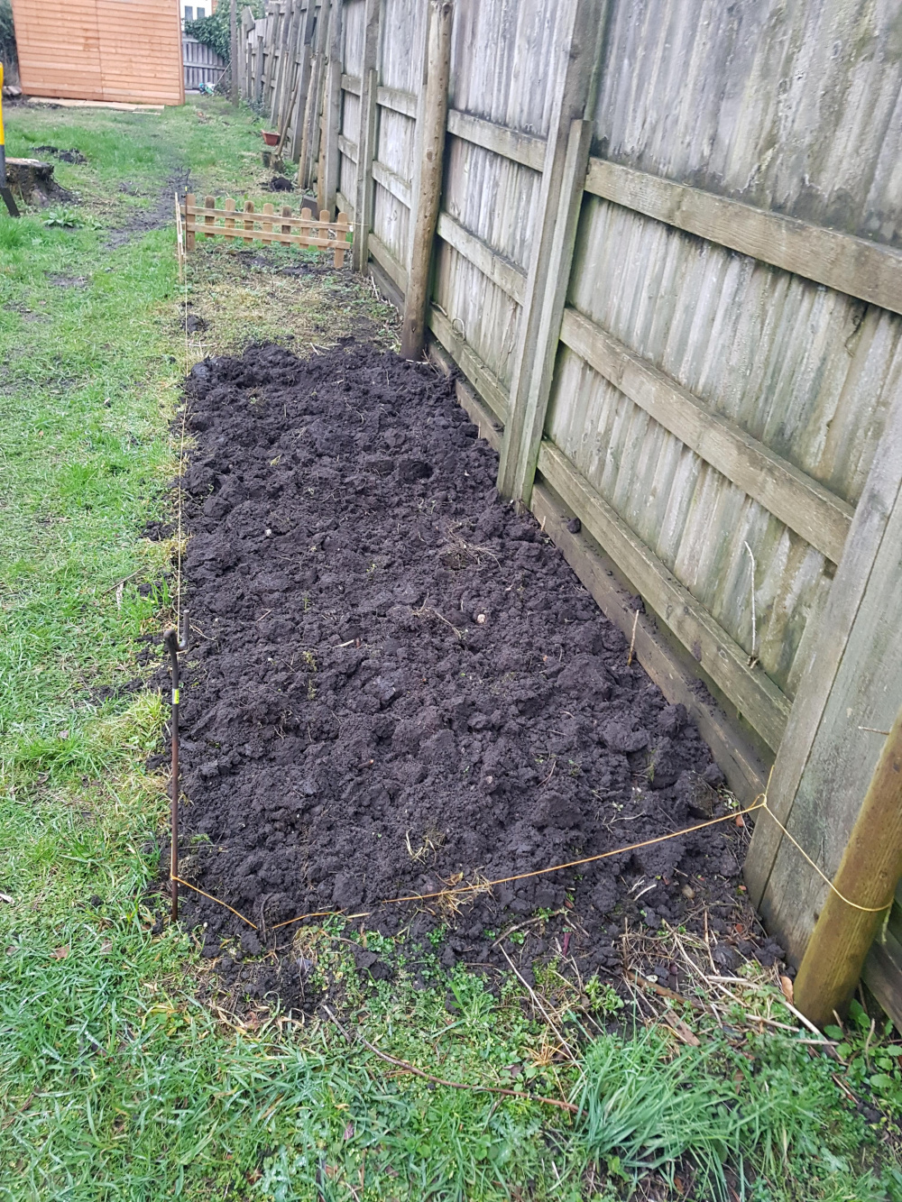 It's starting to look good @pclark42, and good news about the Ph levels but I don't envy you the battle with that bramble patch - you will have a fight on your hands to keep that under control. Is there an old fence underneath that lot? If you can, the best thing to do would be to put a vertical barrier down your side of the new fence, something like roofing felt or butyl liner, in order to keep the bramble roots out of your garden. I would be very inclined to use a one-off treatment of SBK weedkiller on the base of the bramble once you've cut it back. I would also advise waiting to cut it back for another month or so in case there's hibernating hedgehogs or toads underneath.