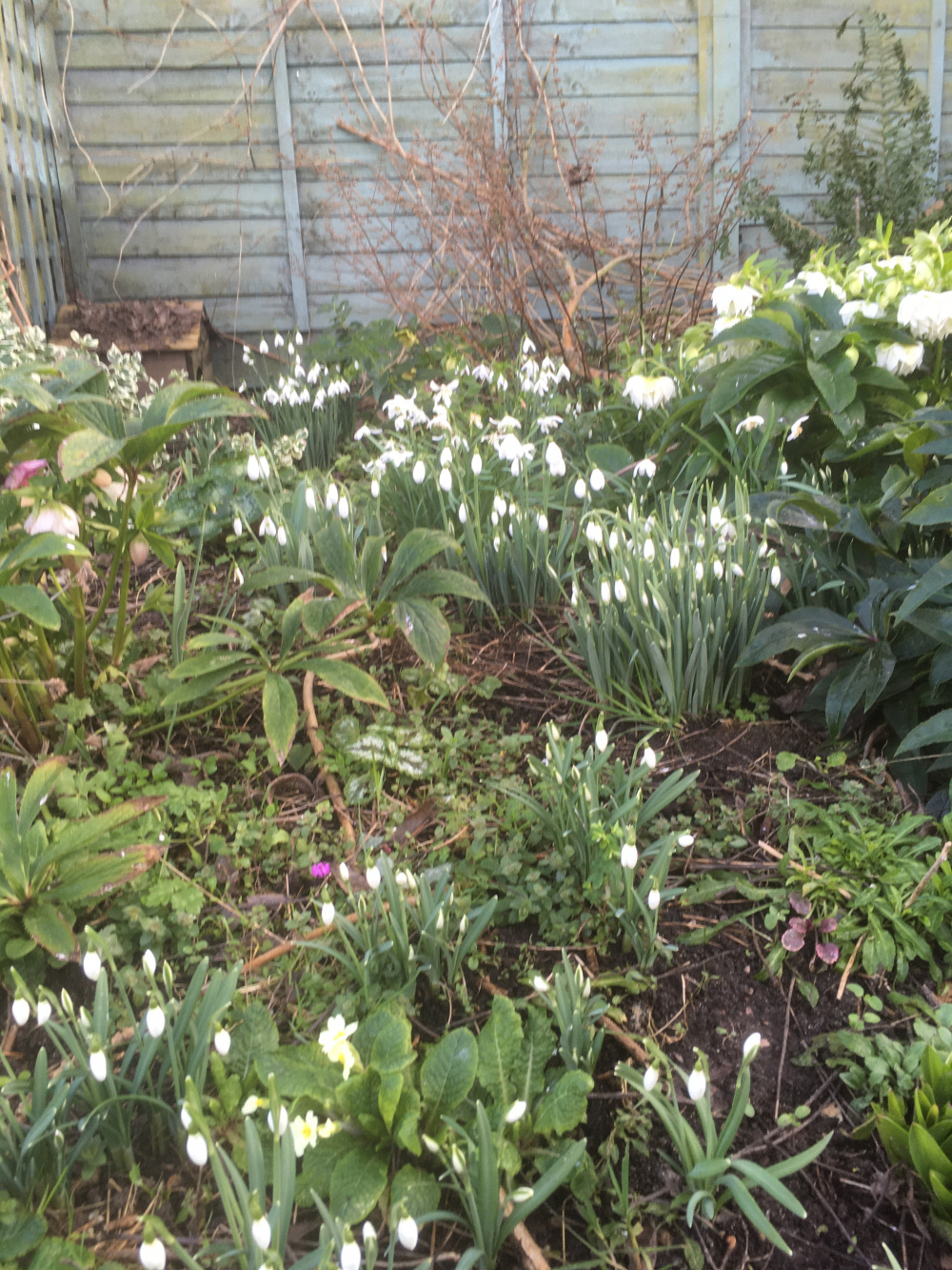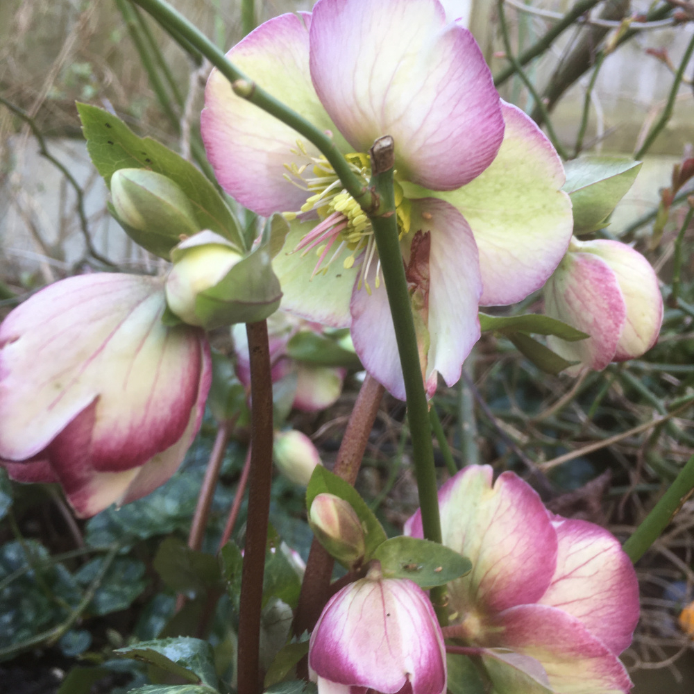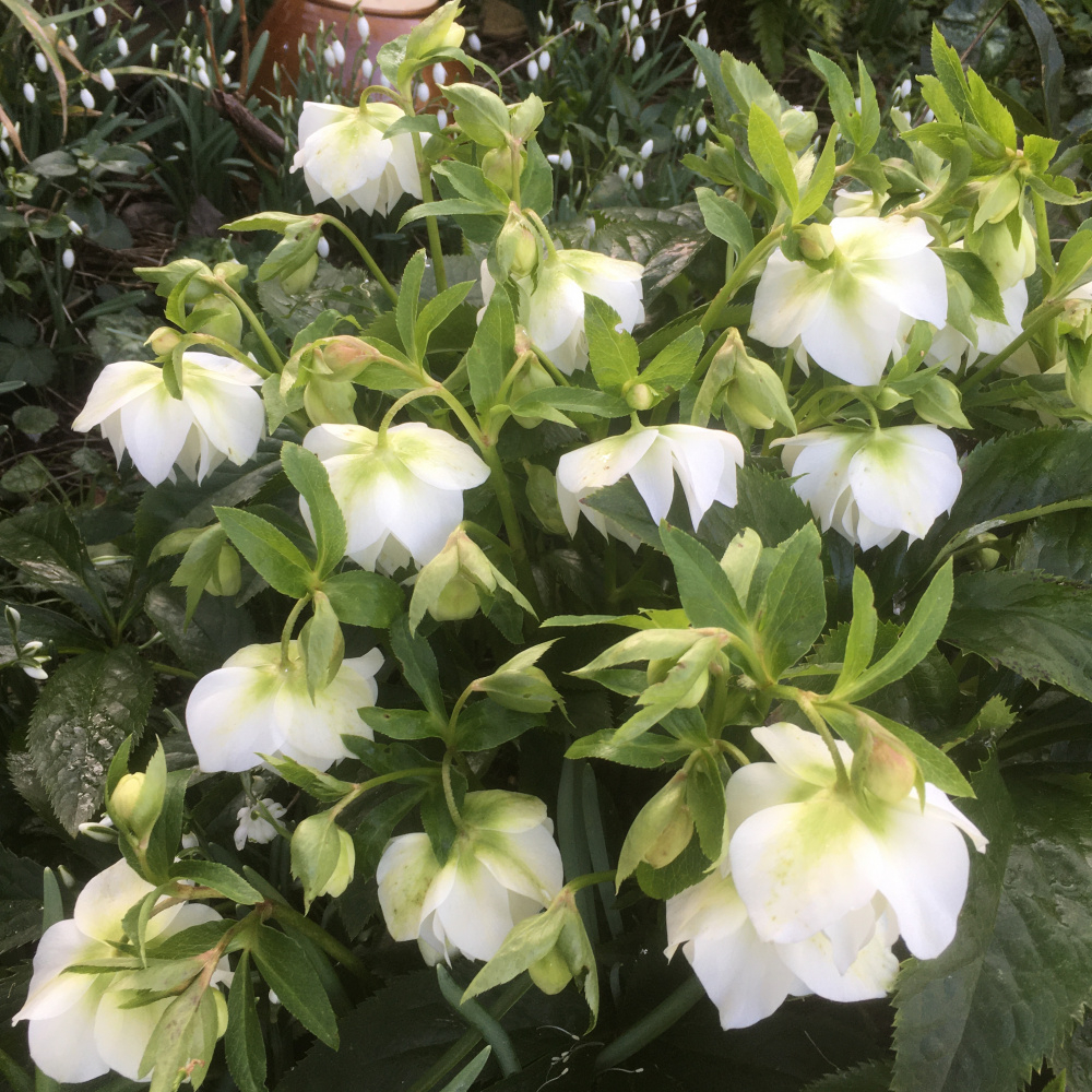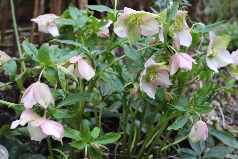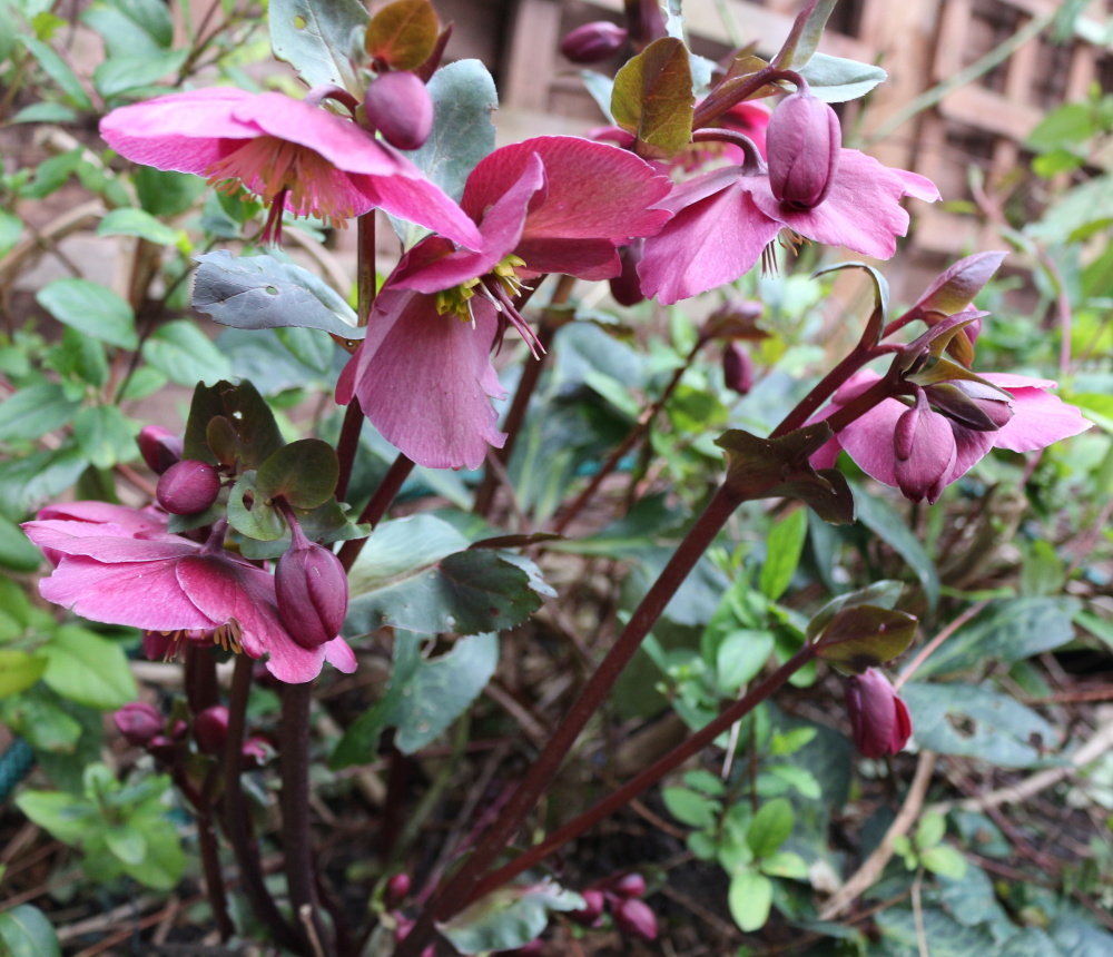My hellerbores are doing much better this year. I'm not sure why. The leaves usually get decimated by slugs, so the flowers are poor. But Anna's Red (a plummy purple) is going great guns at the moment. Snow drop heads all eated off by molluscs but daffs about to pop and hopefully they can hang on.