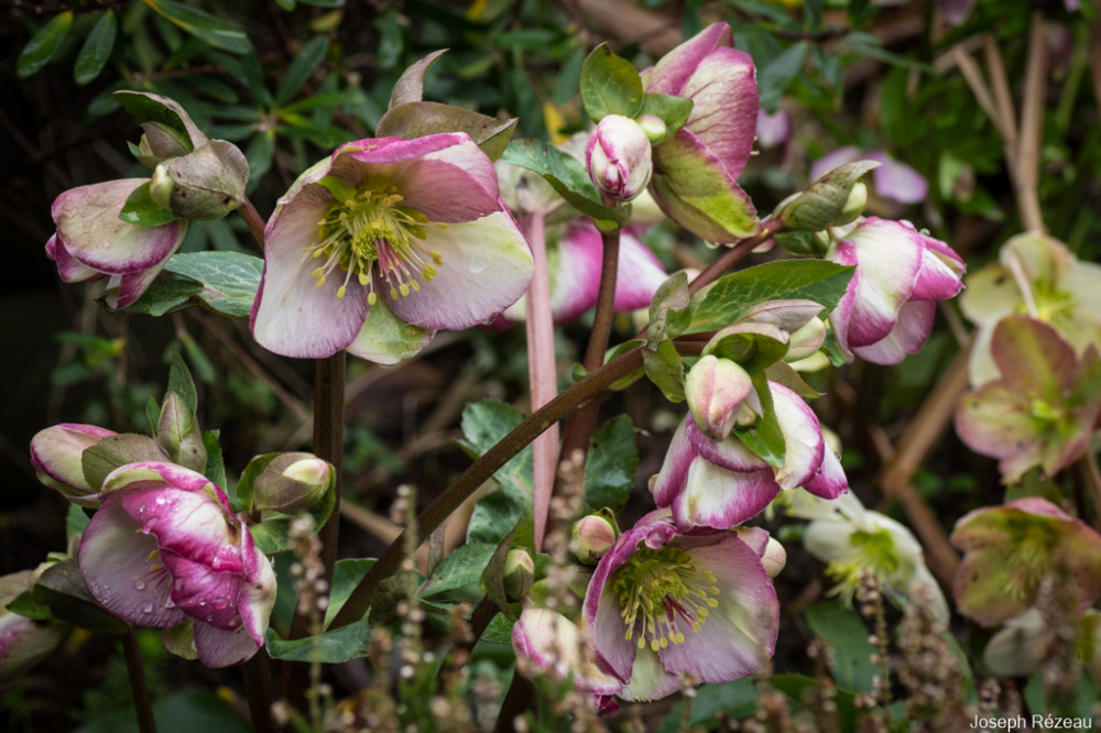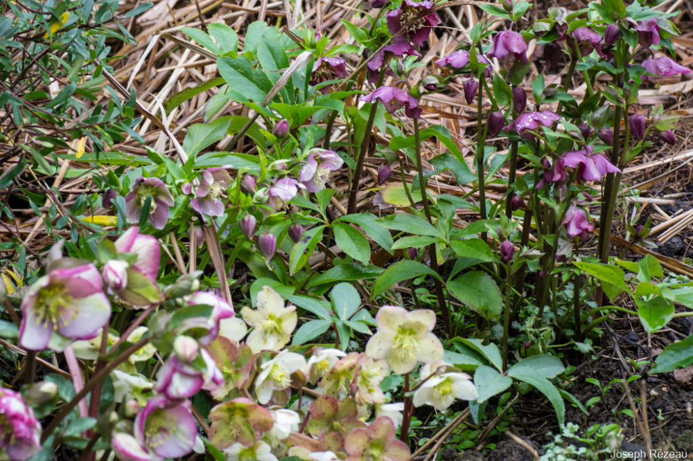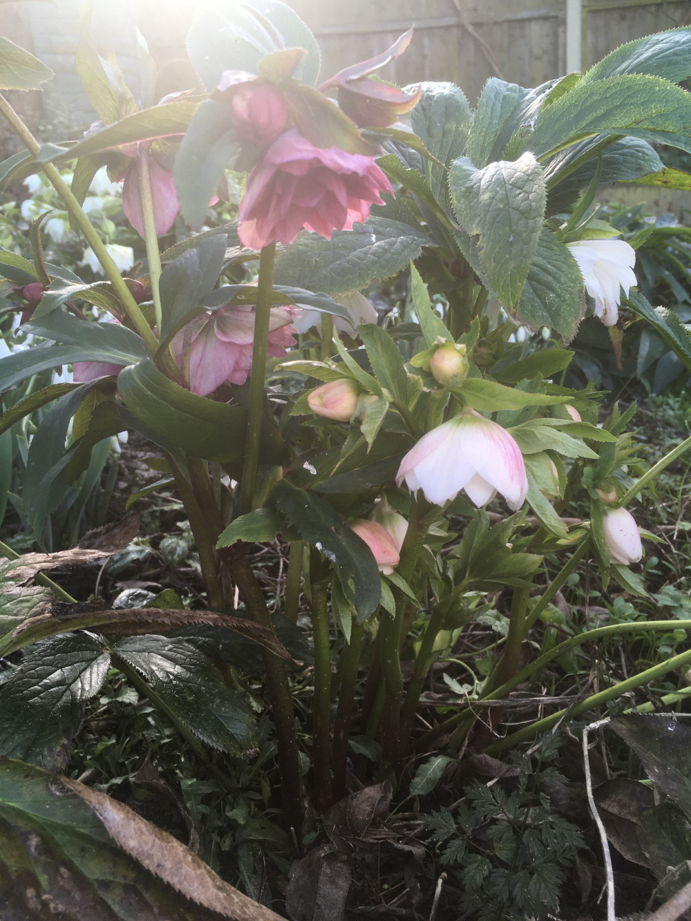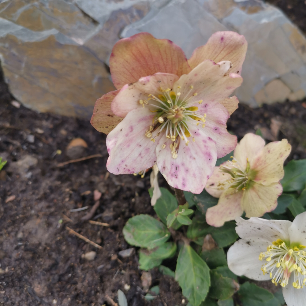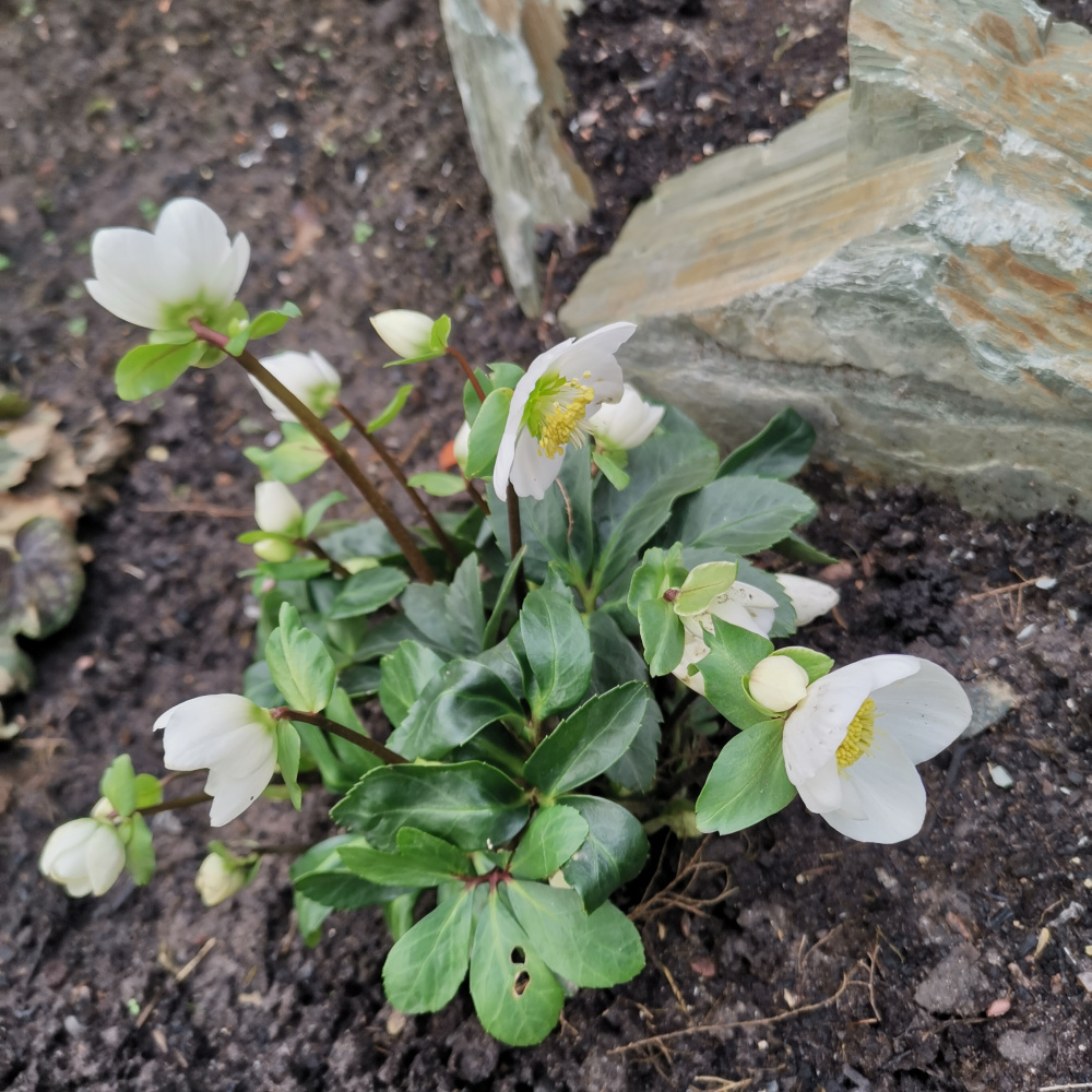 My hellerbores are doing much better this year. I'm not sure why. The leaves usually get decimated by slugs, so the flowers are poor. But Anna's Red (a plummy purple) is going great guns at the moment. Snow drop heads all eated off by molluscs but daffs about to pop and hopefully they can hang on.