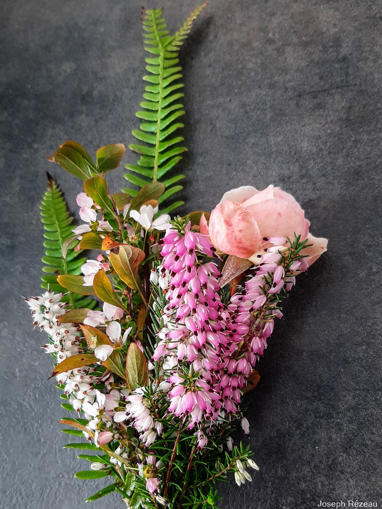 I almost never make bouquets, but today's special was made to celebrate the feast of Saint Jacqueline. It's entirely made of flowers from the garden, including the bud of rose 'Pierre de Ronsard'.