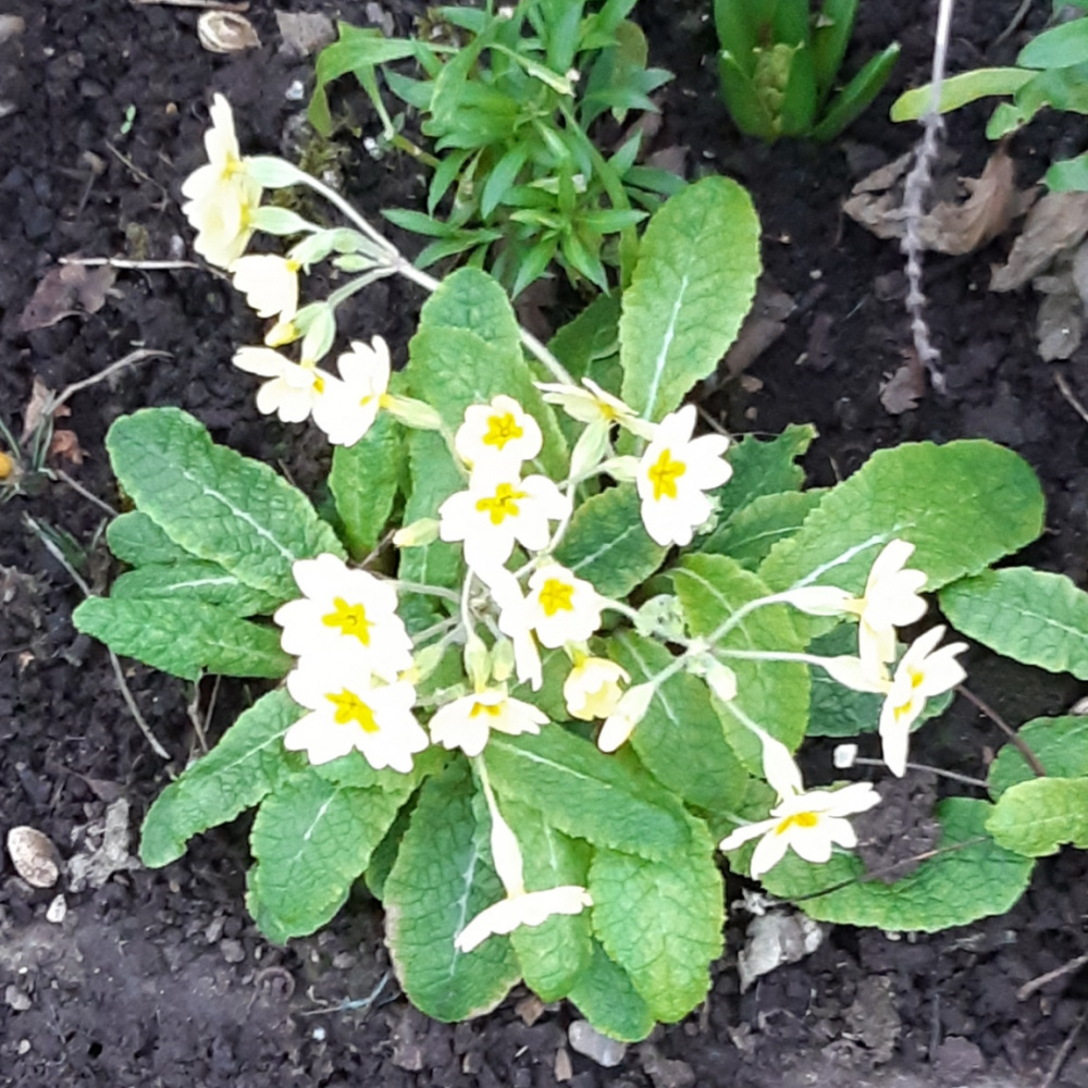 One of many of the polyanthus, one of the plants that i grew from collected seeds of my own polyanthus. It looks like a Primrose cross polyanthus. I know that they're both from primulas.