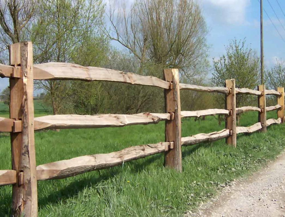 I think a traditional chestnut fence with a low Portuguese laurel behind would look very smart and easily managed (the posts can be banged in with a tractor )