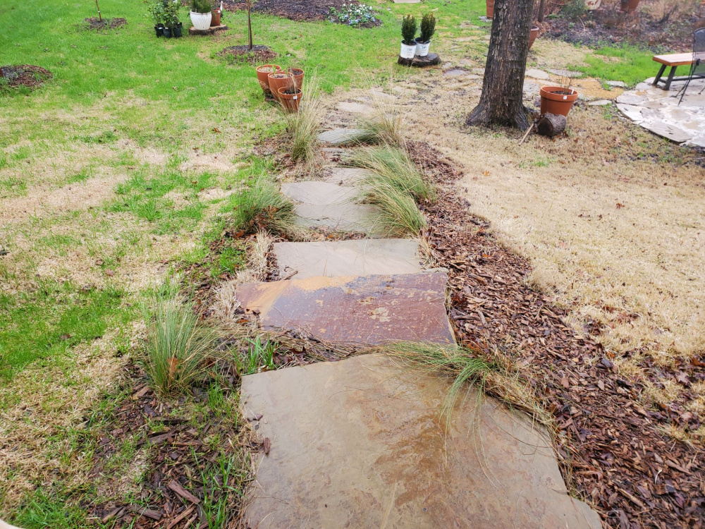 Would it look better to remove the grass? I cut and moved the slabs myself with great effort but adding the grass wasn't a good idea?