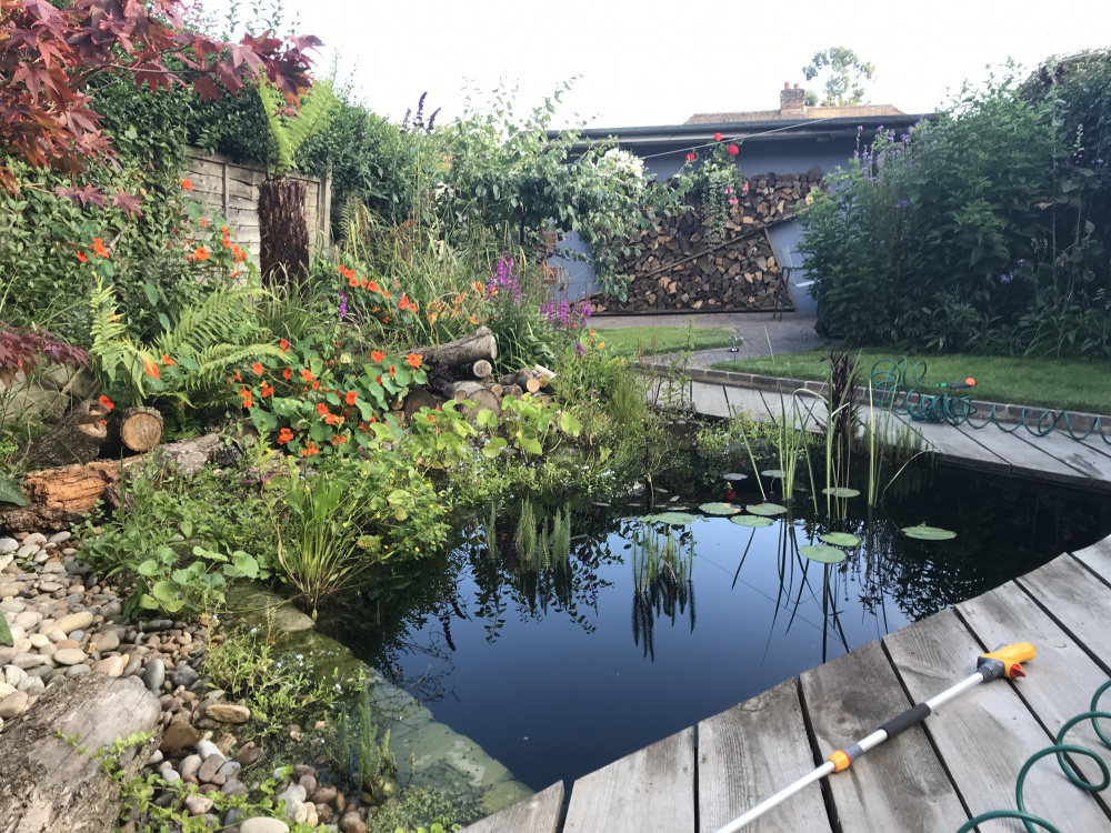 We did our pond last year we love it! We Can’t take the credit for the design but we helped with the grafting and did the logs and planting. We wanted it to be formal but 1st and foremost wildlife friendly, we used logs and cobbles to hide the liner. In the 1st year we had loads of wildlife visit even a hedgehog. It is my favourite part of the garden.