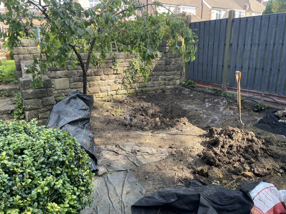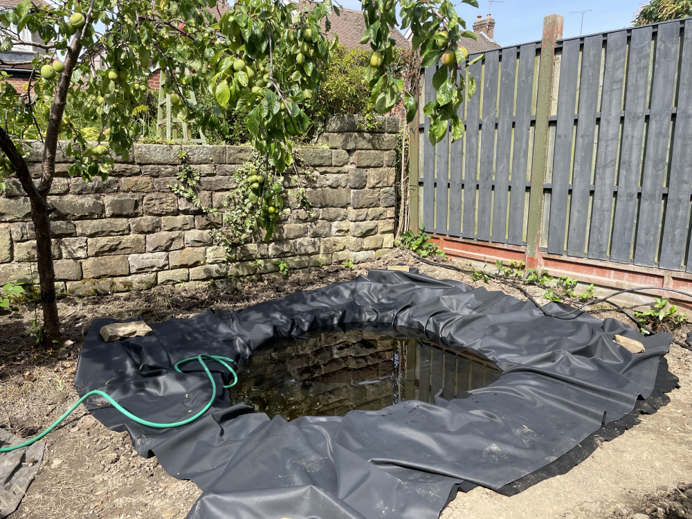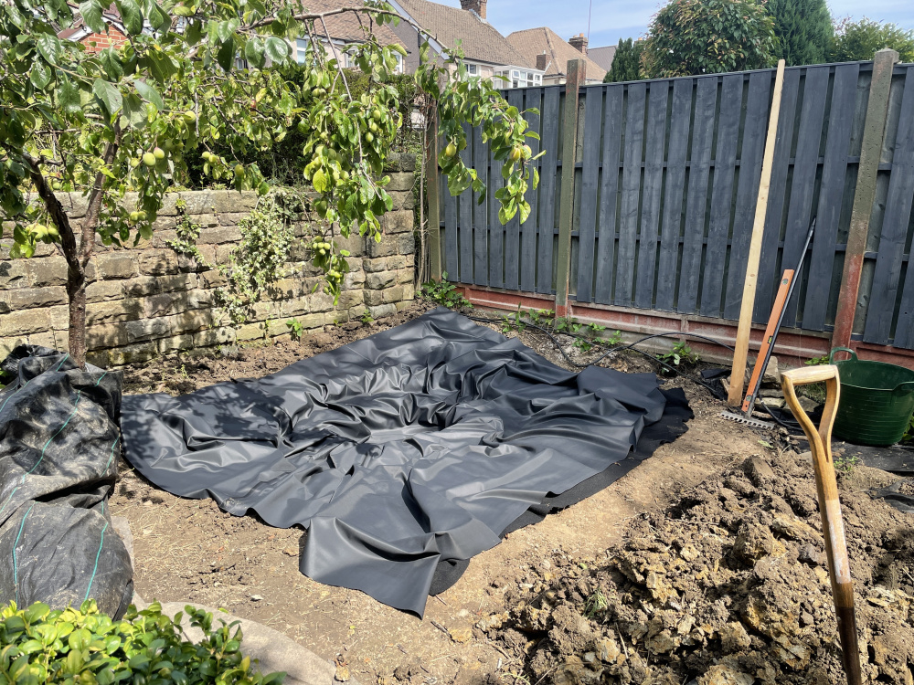 So now I am left with needing to trim the liner and sort out the concrete fence posts that the previous occupier panted for some reason!!