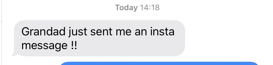 Meanwhile my Dad has achieved hero Grandad status, by not only following all his grandchildren on instagram, but also using that media to send birthday messages aswell. Ā Bless his heart šš¢