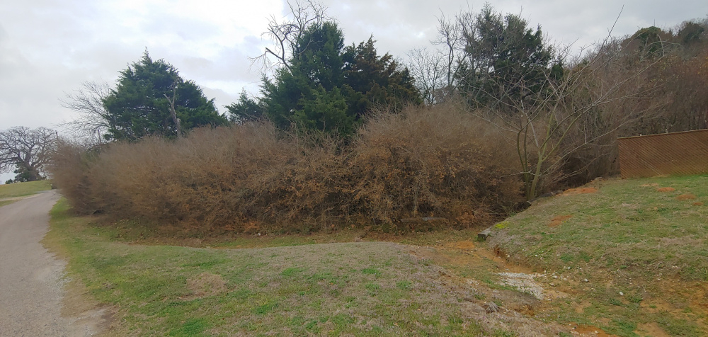 P.S. The bushes here are dormant invasive Chinese Privet. Never even planted on my property. They greened up with a vengeance this year.