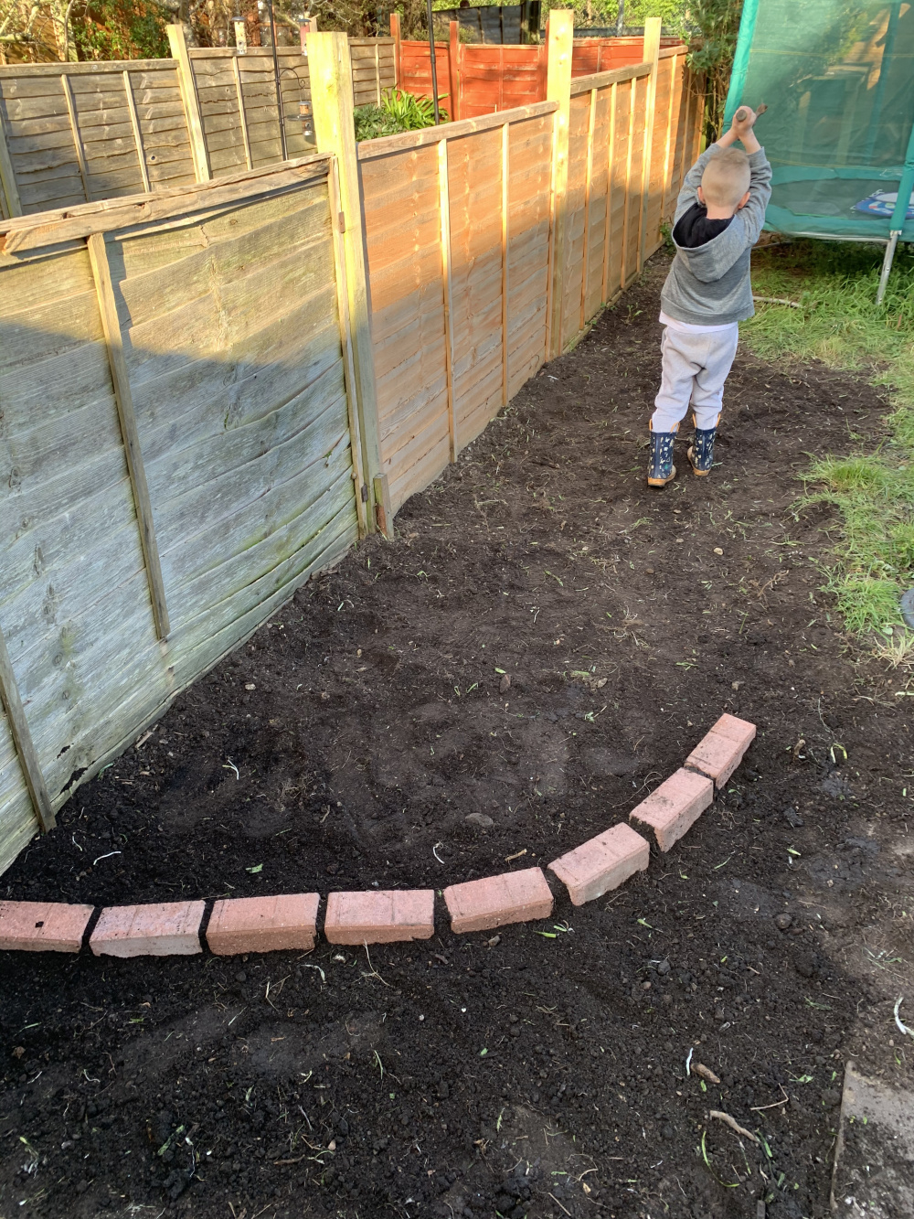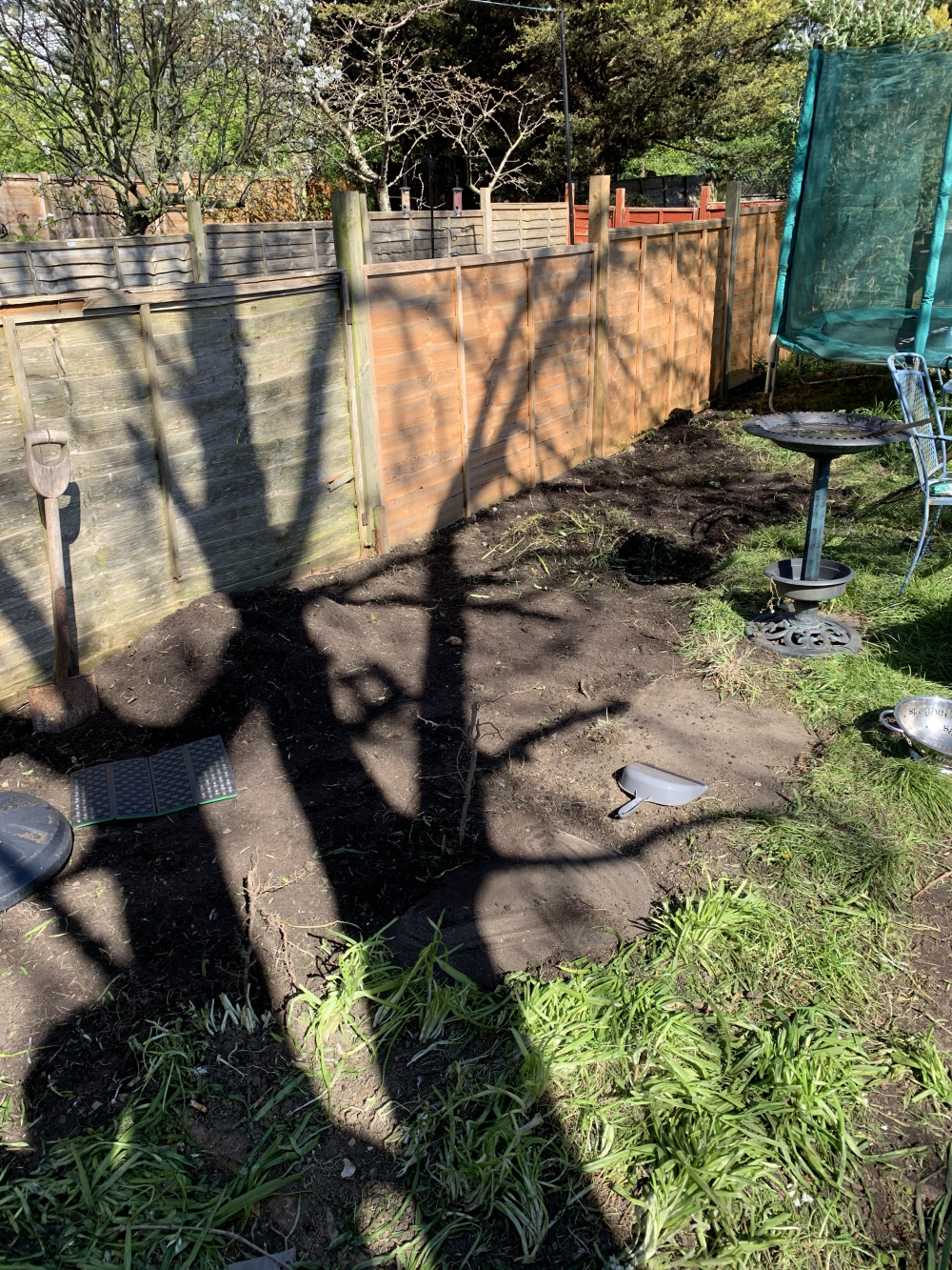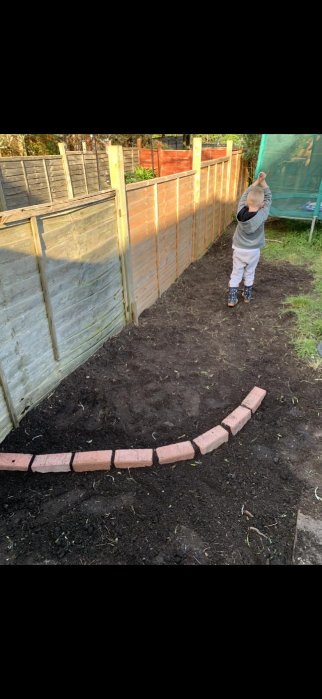 decided to do a bricked area for planting to reduce the amount of grass seeding required (only layed it out roughly, will plan the shape properly and finish it off)