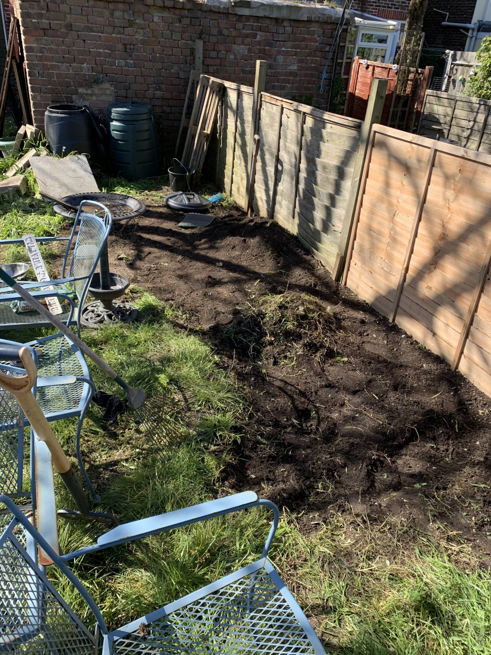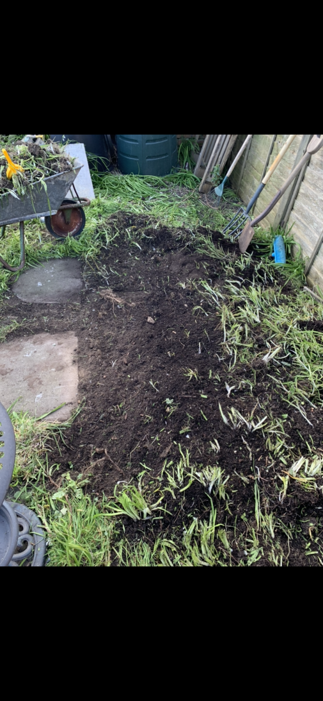 been busy clearing. Filled up both compost bins and garden waste bin. decided to do a bricked area for planting to reduce the amount of grass seeding required (only layed it out roughly, will plan the shape properly and finish it off)