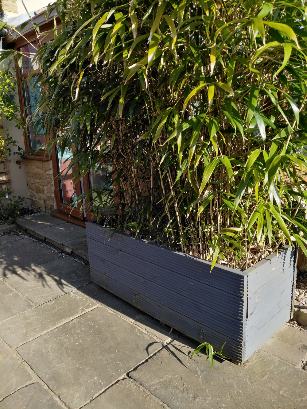 My only trepidation about using a rectangular planter is that the patio is already quite small, so it would take quite a lot of seating space by encroaching inwards.