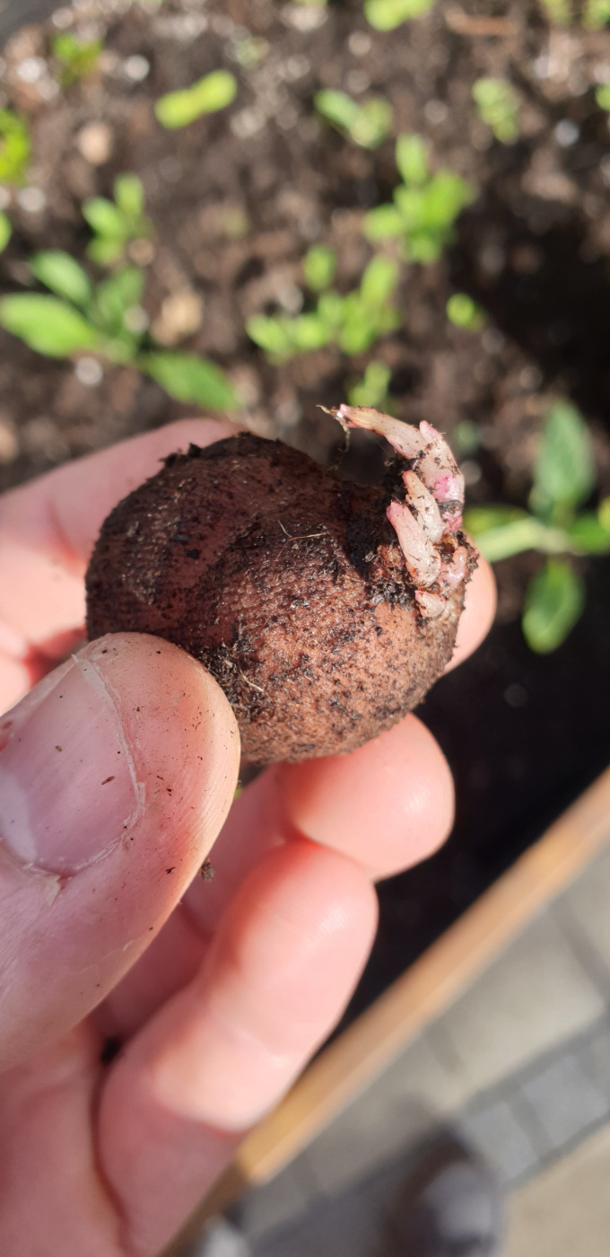 Hi folks, my first year planting Dahlias. I bought the tuber pack from dobbies but this one wasnt attached to the rest of them. It maybe fell off html thought I'd plant it anyway.It has started to root or grow. Can anyone tell me if these pinkish parts are roots to go down in the soil or the plant growing so to face upwards?