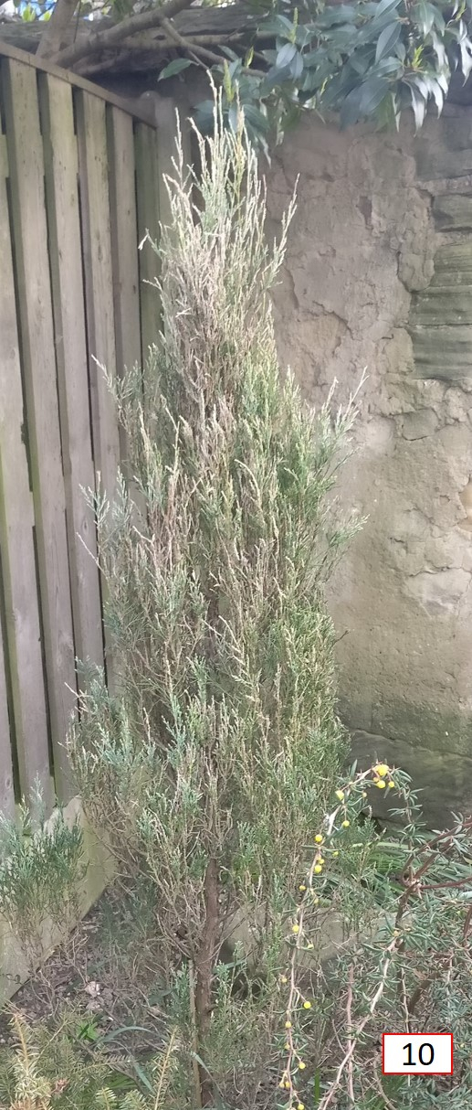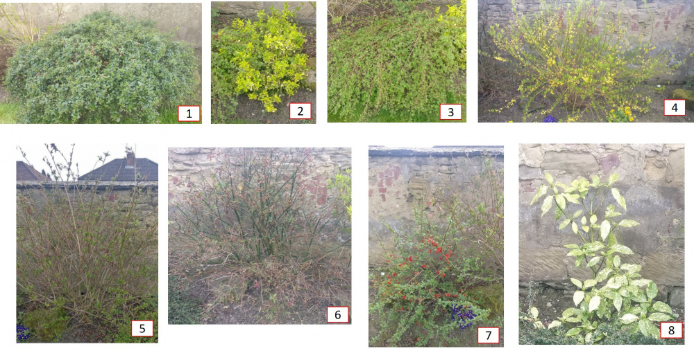 Not the easiest to see but I'll try in fill in the rest , I agree with the other but for No3 not sure myself could be a winter honeysuckle ? need a closer image 1 - Ceanoathus 5 . Cant make the leaves out 6 . Leycestria maybe 10 . sad conifer , looks like it finished to me