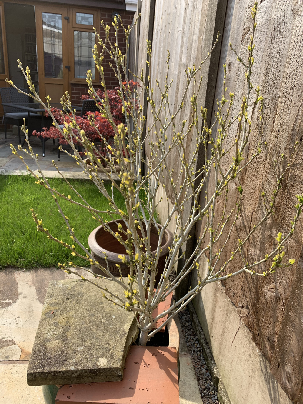 Can anyone help identify this shrub please? Currently in a pot, need to know what size it may grow to if in a garden and if it should flower? Thanks 0