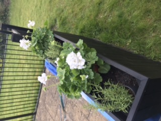Good evening I have three black narrow planters and have some white geraniums and some rosemary and wondered if anybody could suggest 1 or 2 different plants that might look nice in with these please? I like mostly green and white plant/flowers. Thanks 0