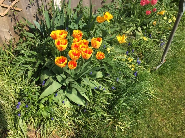 Muscari won't appreciate being dried out, so just pot those up for now, and keep them outside somewhere [labelled] , or replant them in a border. I do as @Hostafan1 with most tulips, and generally regard them as annuals, as our conditions don't suit them very well. Very few of them are consistently reliable in the UK, unless you have really suitable conditions for them.