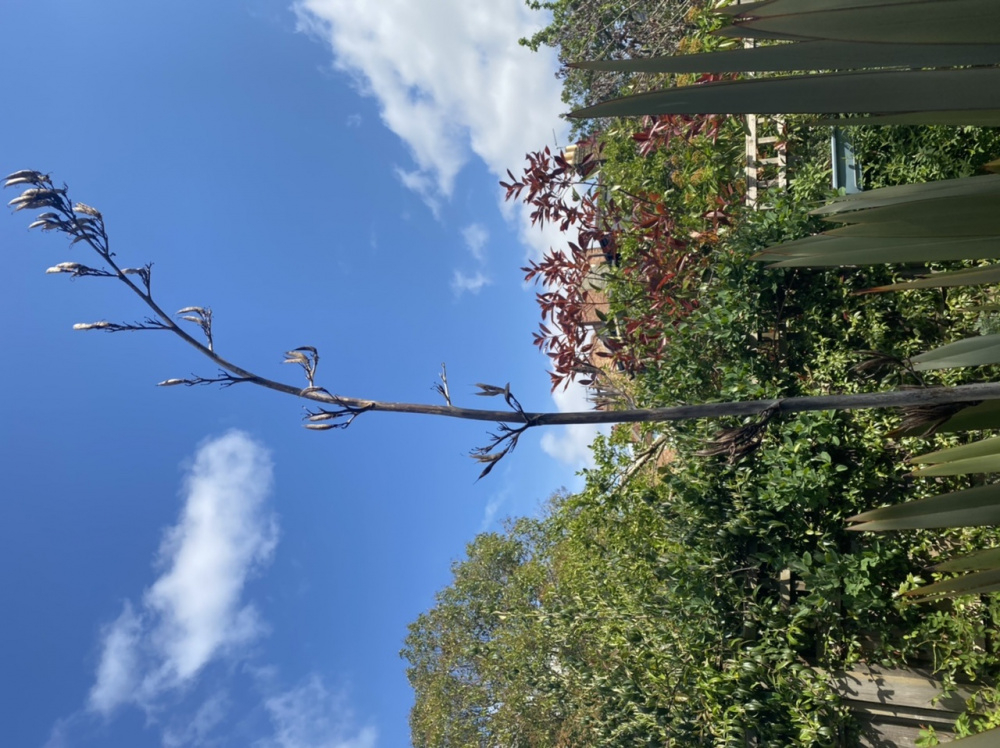 I’ve got what I think is a New Zealand Flax at the end of a garden I’ve recently moved into. I think it flowered last year, and now there’s a central stem, around 7 foot high, which I’m not sure what to do with. Is it better to remove it, or just leave it? I quite like the look, but not sure if it’s doing the plant more harm than good. Here are some pictures from this morning..