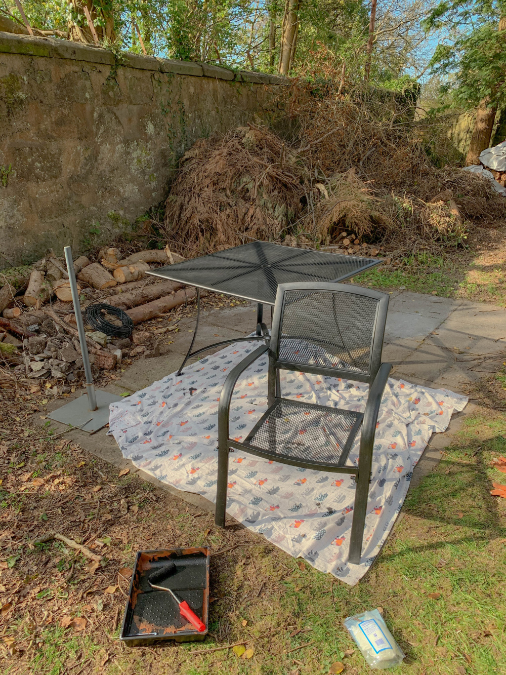 We had a lovely day in the garden today, Fern painted some garden furniture a neighbour kindly gave us.
