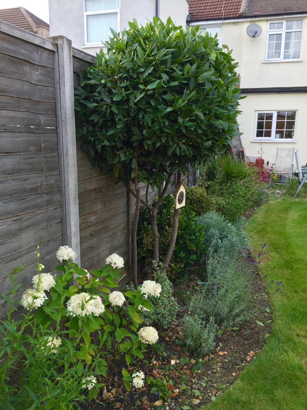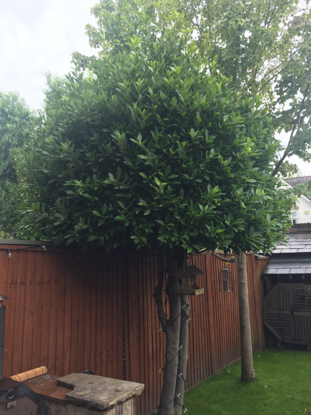 It was planted last year so is yet to properly establish itself and fill out so may hold of for a little while yet but does anybody have any experience of topiary pruning a multi-stem Laurus nobilis?