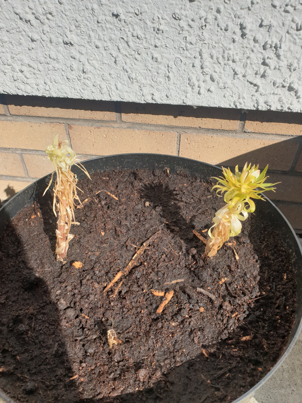Lilies and dahlias will be emerging about now...keep watering and give them a couple of weeks? Different varieties react differently to the weather conditions.