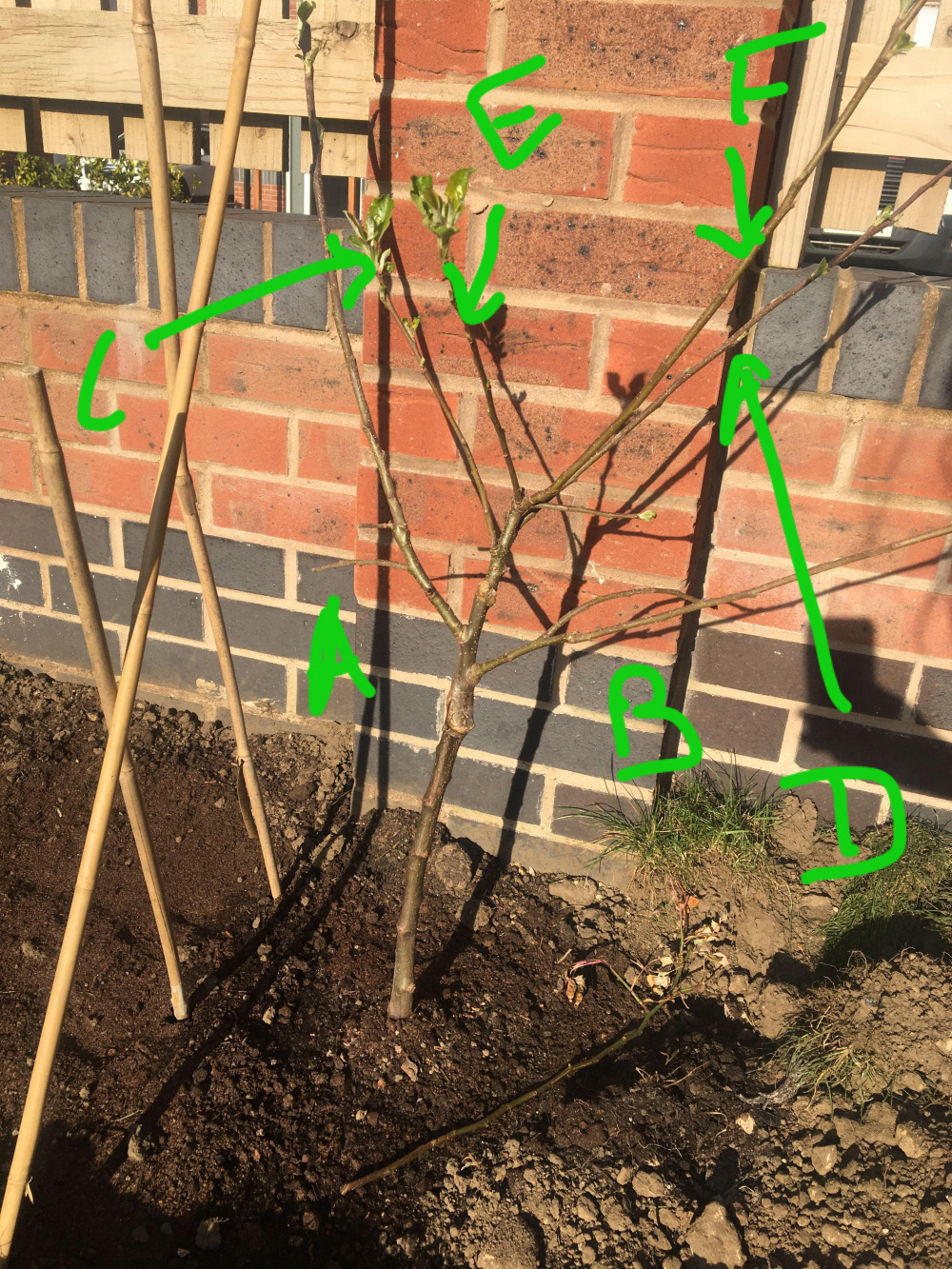Sorry to hijack the thread, but I have 2 greengages that I am trying to espalier. I will post photos tomorrow, but my problem is getting growth at the bottom. Is there any way of stimulating a short stubby branch at the bottom to put on growth and become the lower down part of the fan?
