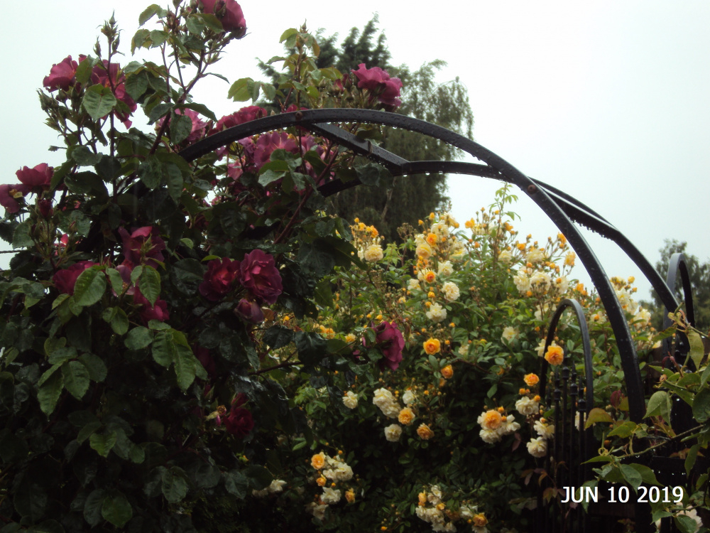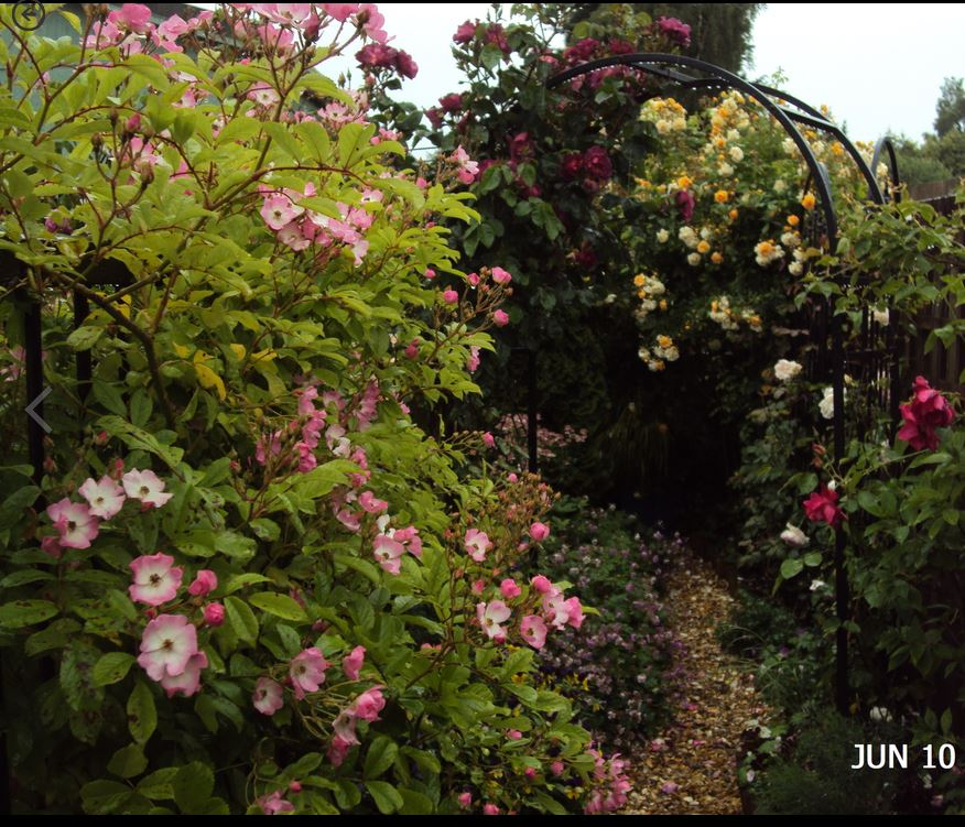 Obviously this is a rose garden... if you want to grow roses, I recommend a strong scented variety - we all want to sniff something on the way through.. but don't be tempted by romantic notions of big ramblers and climbers.. they are far too big for this.. climbing Floribundas or shrub roses trained to climb are the way to go... I do have clematis as well, and I don't like it too crowded, otherwise I feel overwhelmed with total cover..