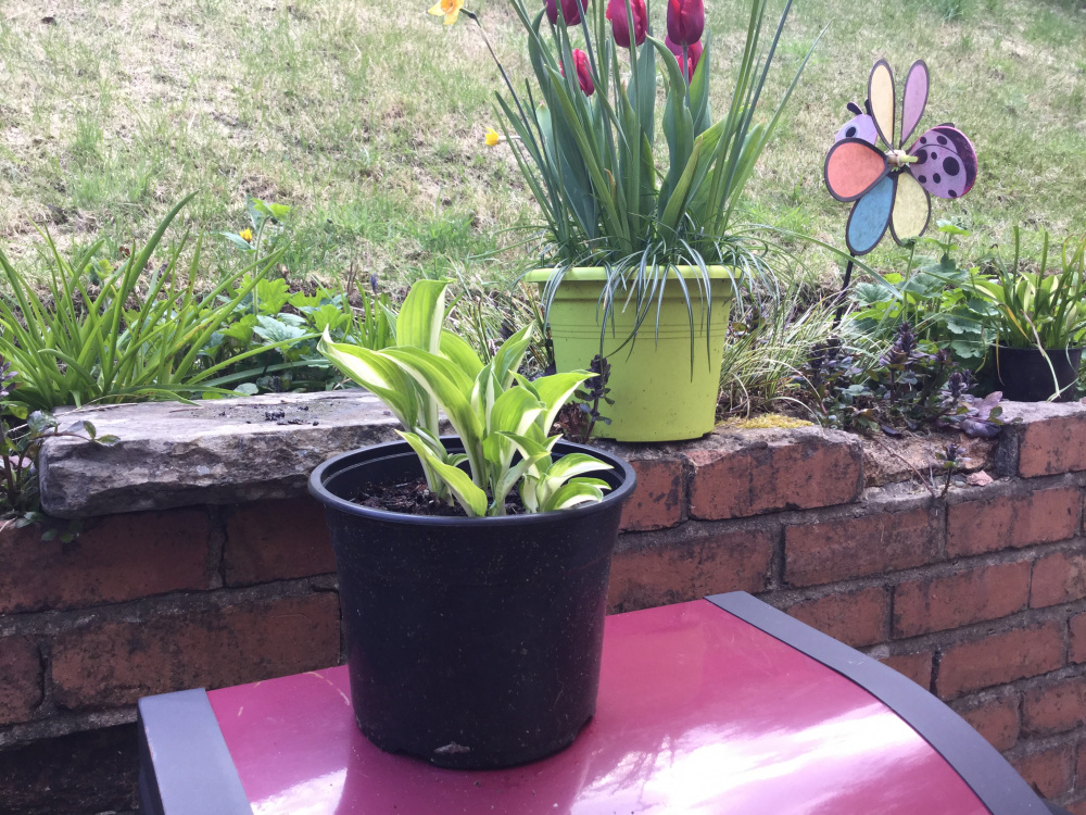 Last Autumn our grandaughter was re-designing her new back garden and wanted to get rid of 2 huge Terracota pots of Hostas! She acquired a pup a Blue Merle sheepdog and thought she would wreck the plants so we had the Hostas and split them making quite a few new plants which are now taking off as the picture shows but I know there is a Hosta fan on here what variety is it ? I know there's hundreds but I have no idea .
