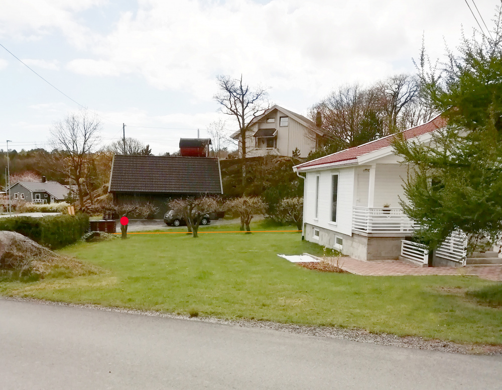The one tree that has a red dot is coming down and the area will be a compost bin/vegetable/fruit garden. The orange line is where the property ends and they neighbour's begin.