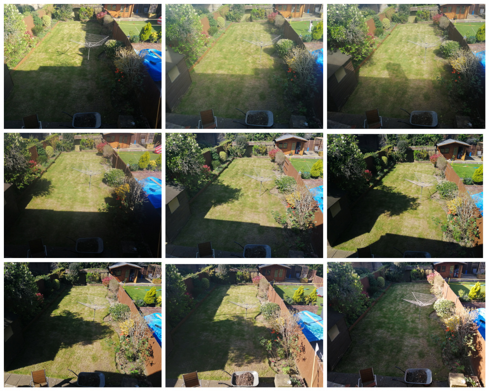 Here's a time lapse of the shade in the garden, taken hourly from 9am until 5pm (14th April):