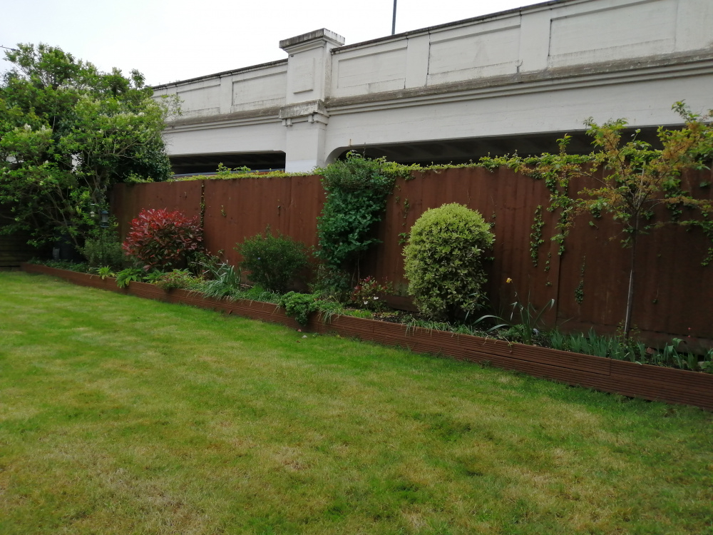 The view from the patio at the far end of the garden is a problem as it faces the bridge: