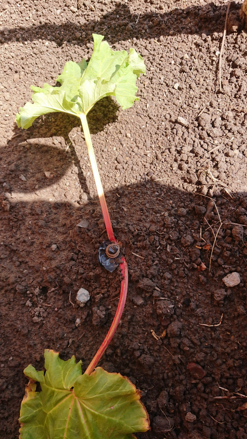 Now give it plenty of water throughout the summer and lots of organic mulch and just let it grow. Don’t pick anything ... let it build up a viable crown and store up energy for next year. Hopefully you’ll be able to pull a few stalks next year and by the following year you’ll have a really productive plant 😊