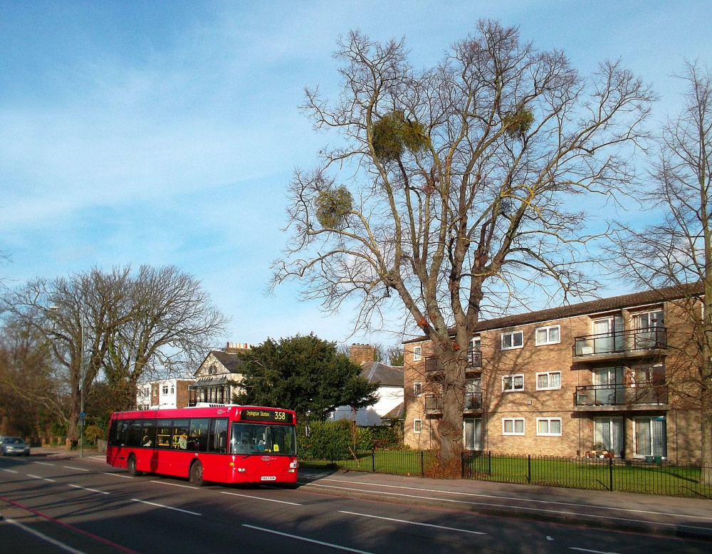 There seems to be a lot of it on the trees bordering the A21 and quite a bit down this end of South London. I don't know why but the fact it's way to high to harvest might be a factoe.