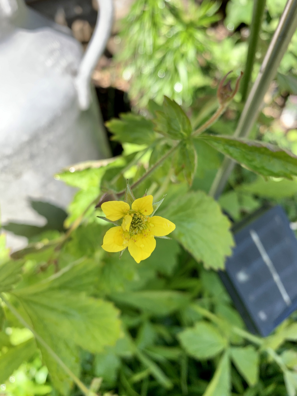 Looks like Wood Avens, Geum Urbanum. A weedy plant if you let it naturalise in your garden.