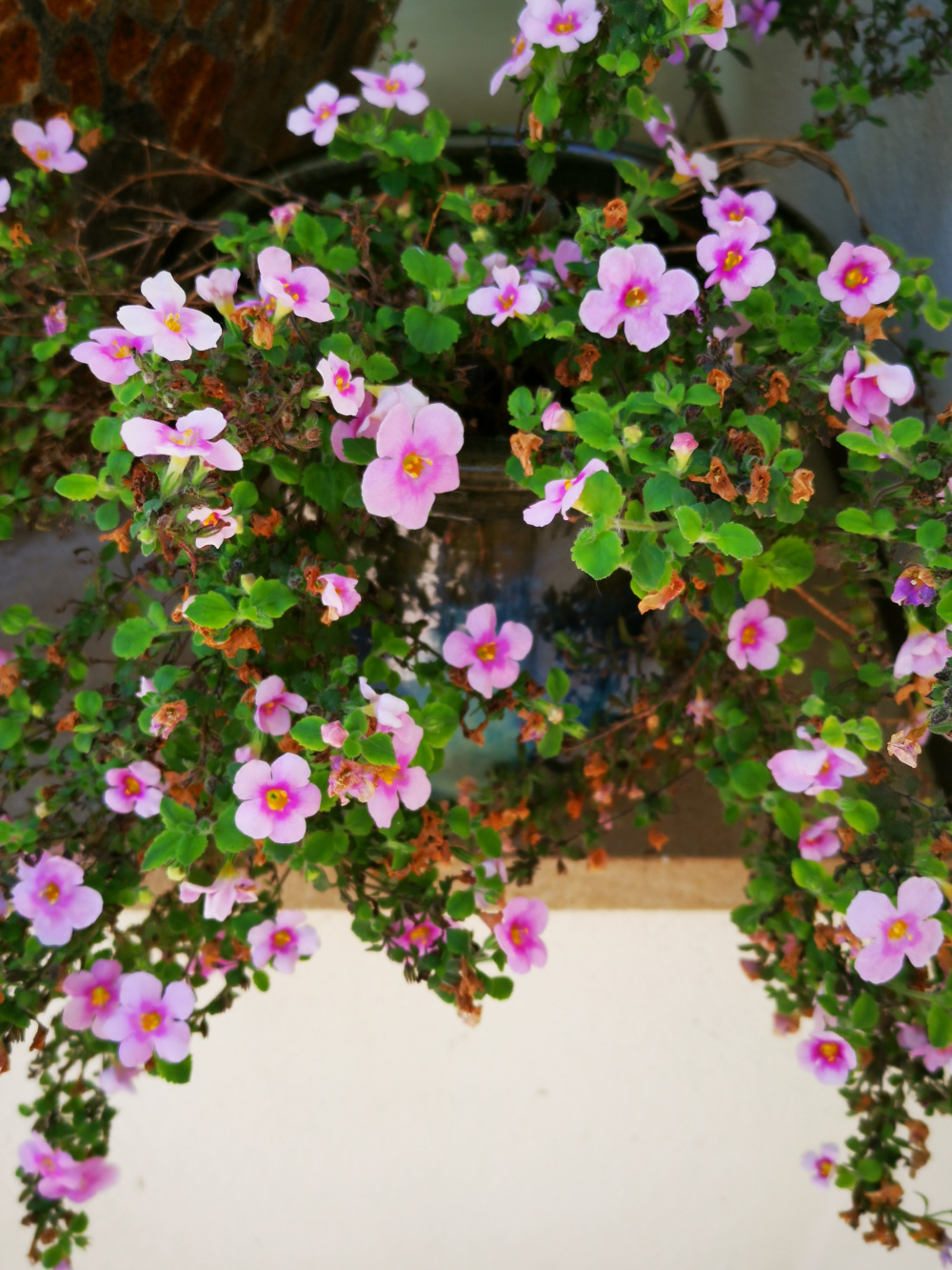 Borderline said: I think the pink trailing plant is Chaenostoma Cordatum. A tender perennial often used as annuals for container and basket planting.