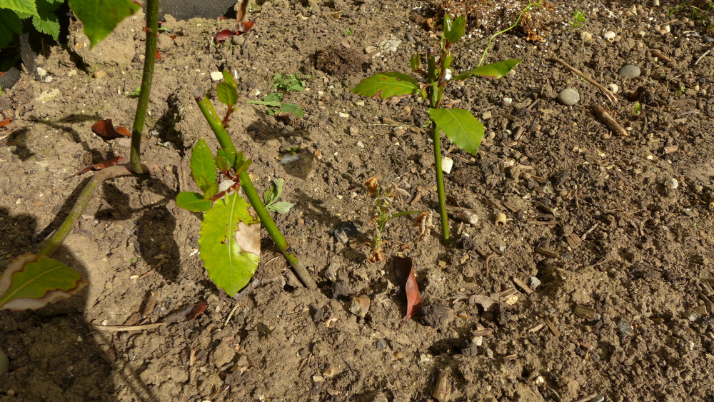 I planted out some rooted cuttings of my old bay bush. For over a year they were just twigs, but after about 15 months thy're shooting