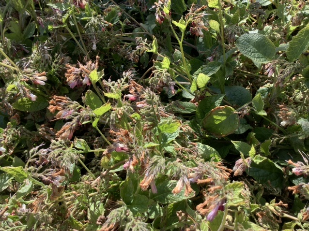 I have quite a large comfrey plant and wondered how to look after it. It is beginning to look a bit sad, but the bees appear to still like it. Are you suppose to dead head the flowers or trim back?
