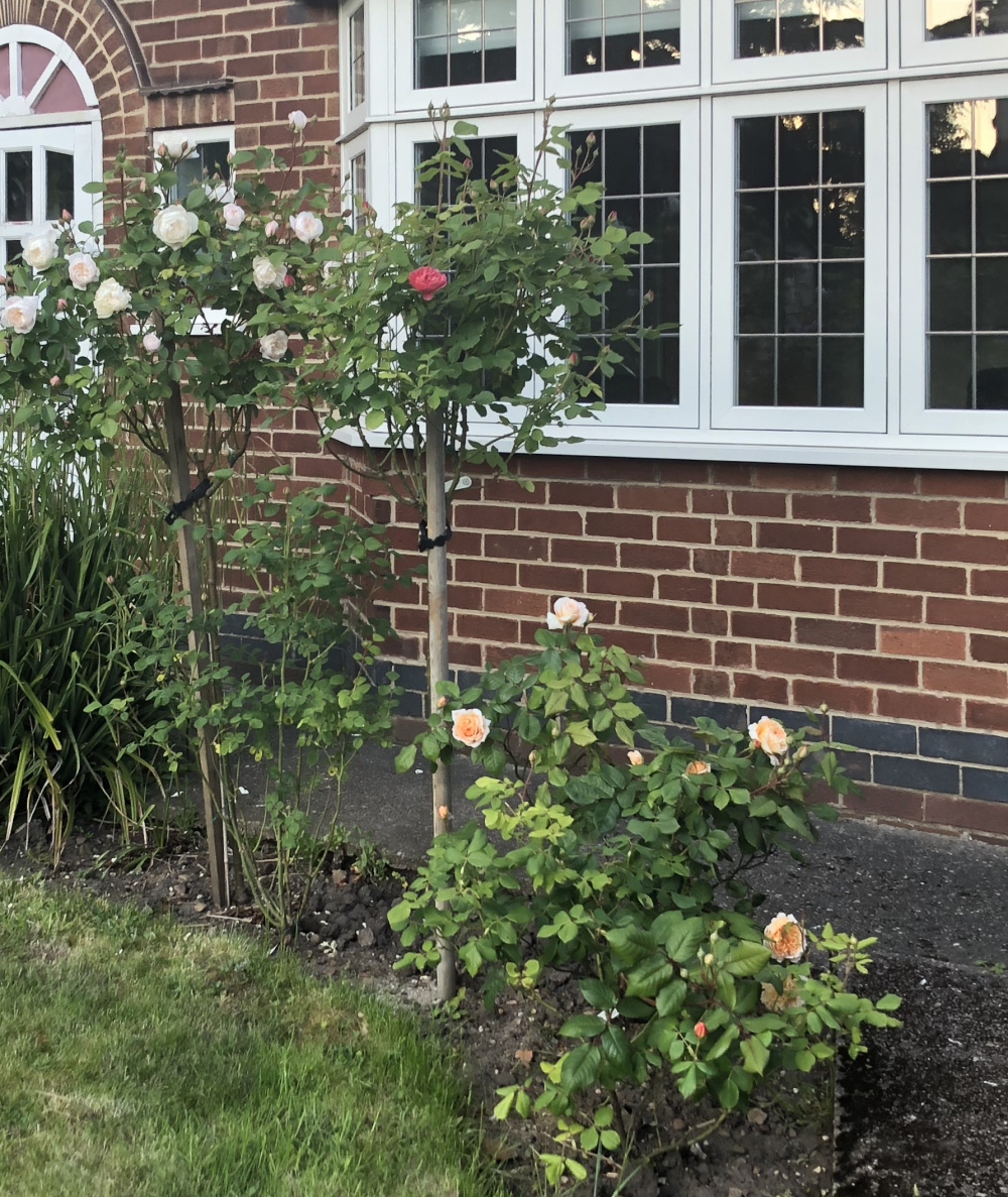 Any ideas for plants to go well in it’s space? It encroaches on the front entrance, so I was thinking a lavender - but had heard salvias are good for black spot on roses, so was debating between the two. Do salvias look quite cottage garden-y, whilst these roses look more formal? Do salvias have to be literally planted under the roses for there to be benefits?