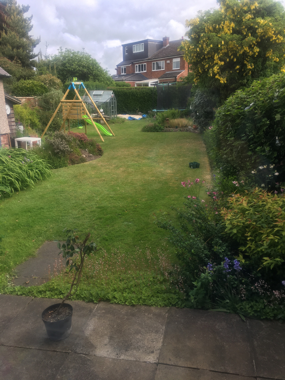 mind. We are wanting to completely overhaul our back garden and I really am flummoxed. Fine with interiors but not gardens. I like real statements and as it’s a 1930s house I feel it lends itself to that. Happy to get rid of the trampoline and maybe even the tiny pond where the ferns are. Bottom left is in preparation for a summerhouse.