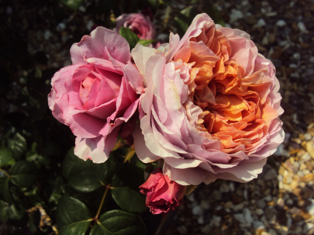 This Tantau rose 'Eisvogel' is also a winner for me.. the centre of the blooms do turn an apricot/slightly orange colour, which may jar with the outer pink, but I don't worry about that.. the blooms are also sweetly Old Rose scented... just wonderful, and the foliage is perfect... dark and leathery... shapely, rounded growth, with upright strong stems.. I am keeping this one for sure..