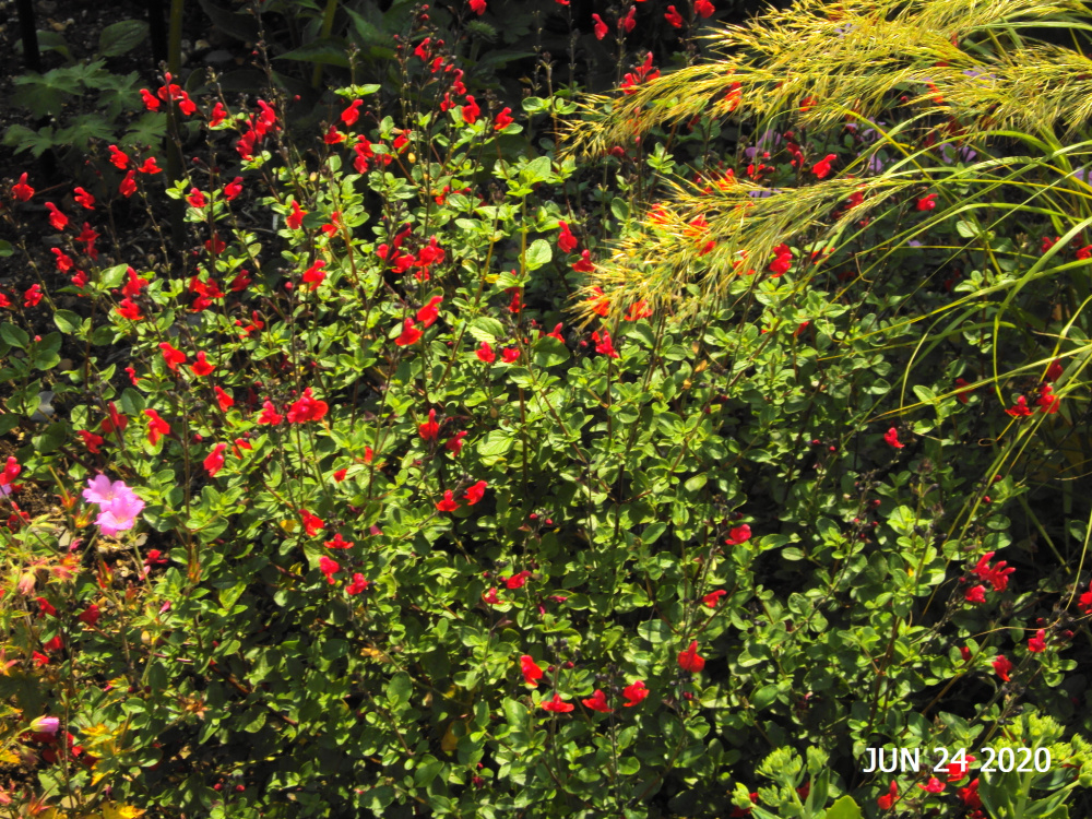 Nice and hot today... 'Achnatherum calamagrostis'... besides roses, one of my best plants.. ..especially when the wind blows... Salvia gregii 'Red Swing'... 'Carmen Wurth'.. 'Scented Garden'... 'Eisvogel'...