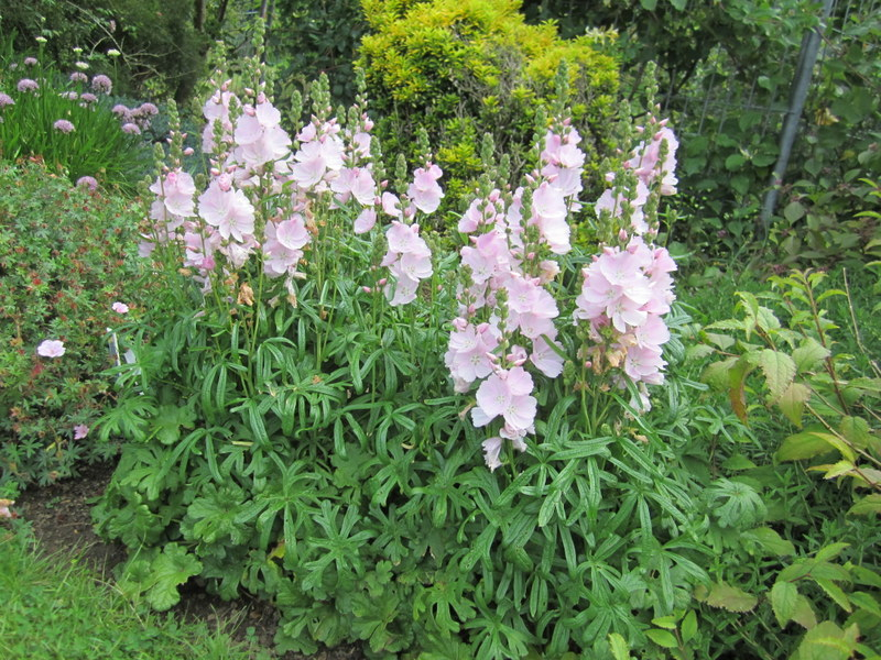 I would like the palest pink Sidalcea - it looks like my choice is Rosaly , Elsie Huegh. My Love or Little Princess.