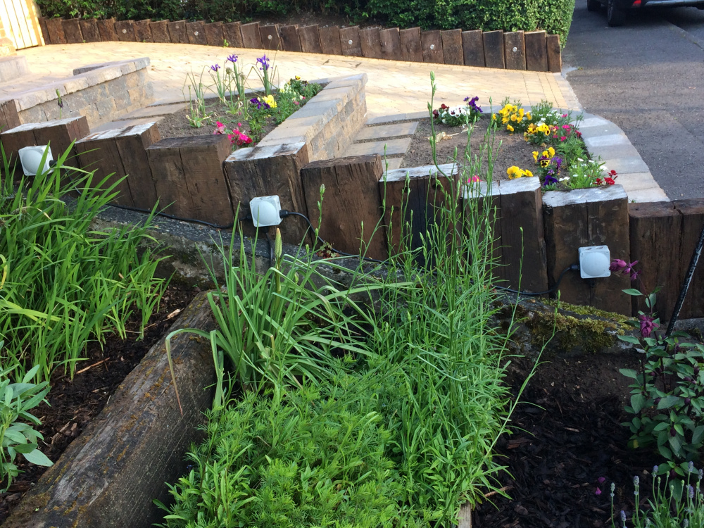 Hello Folks - My neighbours have recently done some work on their garden which has left these 'workings' visible on my side. Any suggestions as to what / how I could plant to make it look a bit better?