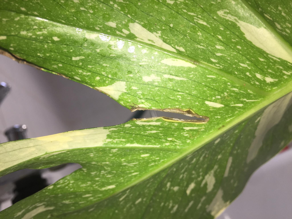 So today I noticed this brown ripped edge on the fenestration of my monstera, one week ago she didnt have anything of the sort (no rip or anything) so now I am a bit freaking out. Upon inspecting past photos, I see she had a faint line at that spot that has now ripped - attaching photo of that as well - it is with the red circle. She looks healthy otherwise, growing a new leaf steadily. She is in a mixture of soil for gree plants, orchids soil, perlite and a bit of coconut coir. I havent watered her in a week as the soil is still moist. As the weather here is still not very warm or bright, she is under a growing lamp for the time being and is kept inside at constant temperatures and humidity at around 60%. She is also in a plant bag instead of a pot to allow for better breathing. Any advice or tips would be much appreciated! Thank you!