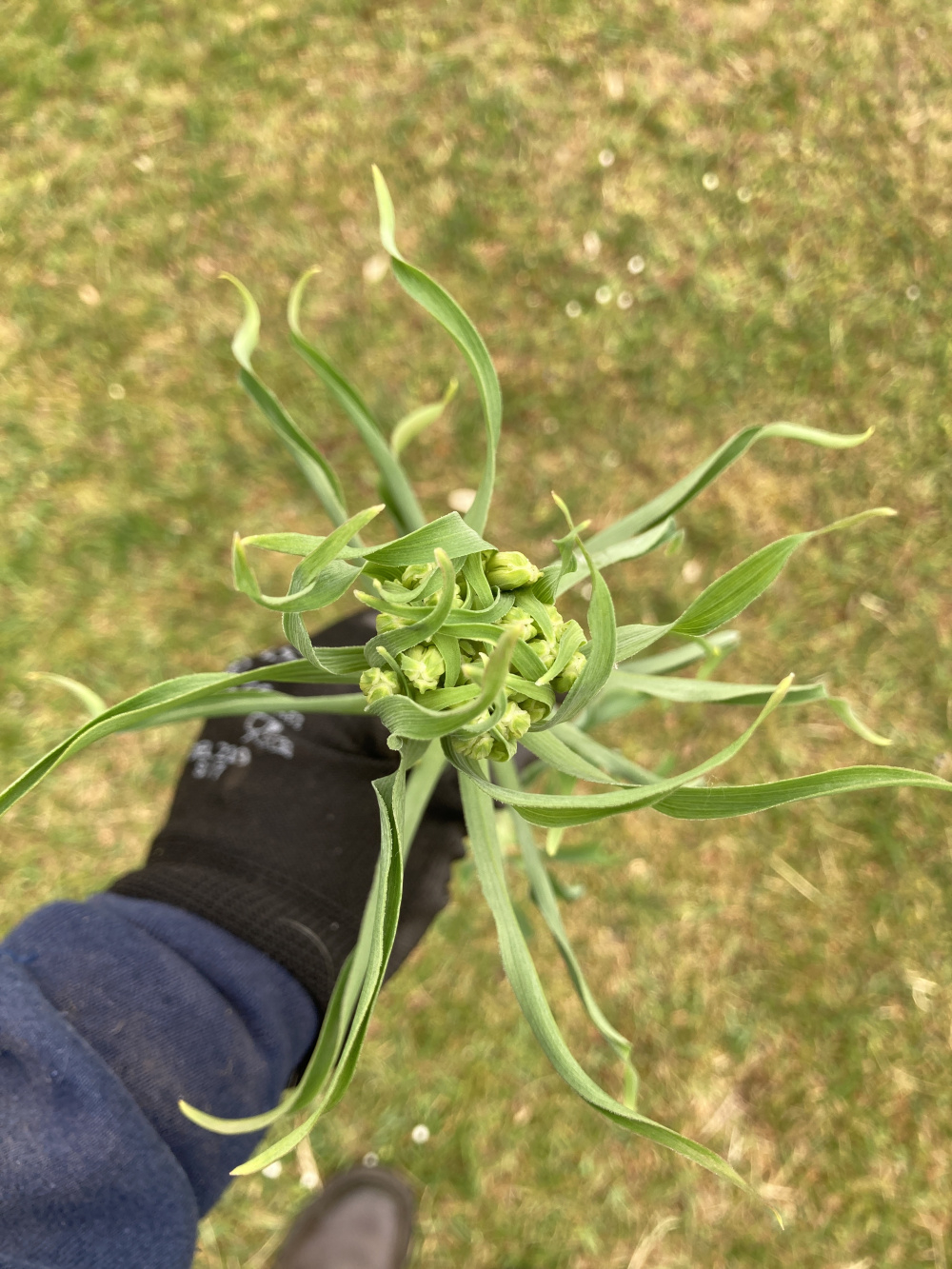 We are gardeners and it seems to have self seeded around one of the gardens we haven’t been to for a long while. There is a lot of it. We picked one head to put on here for help!
