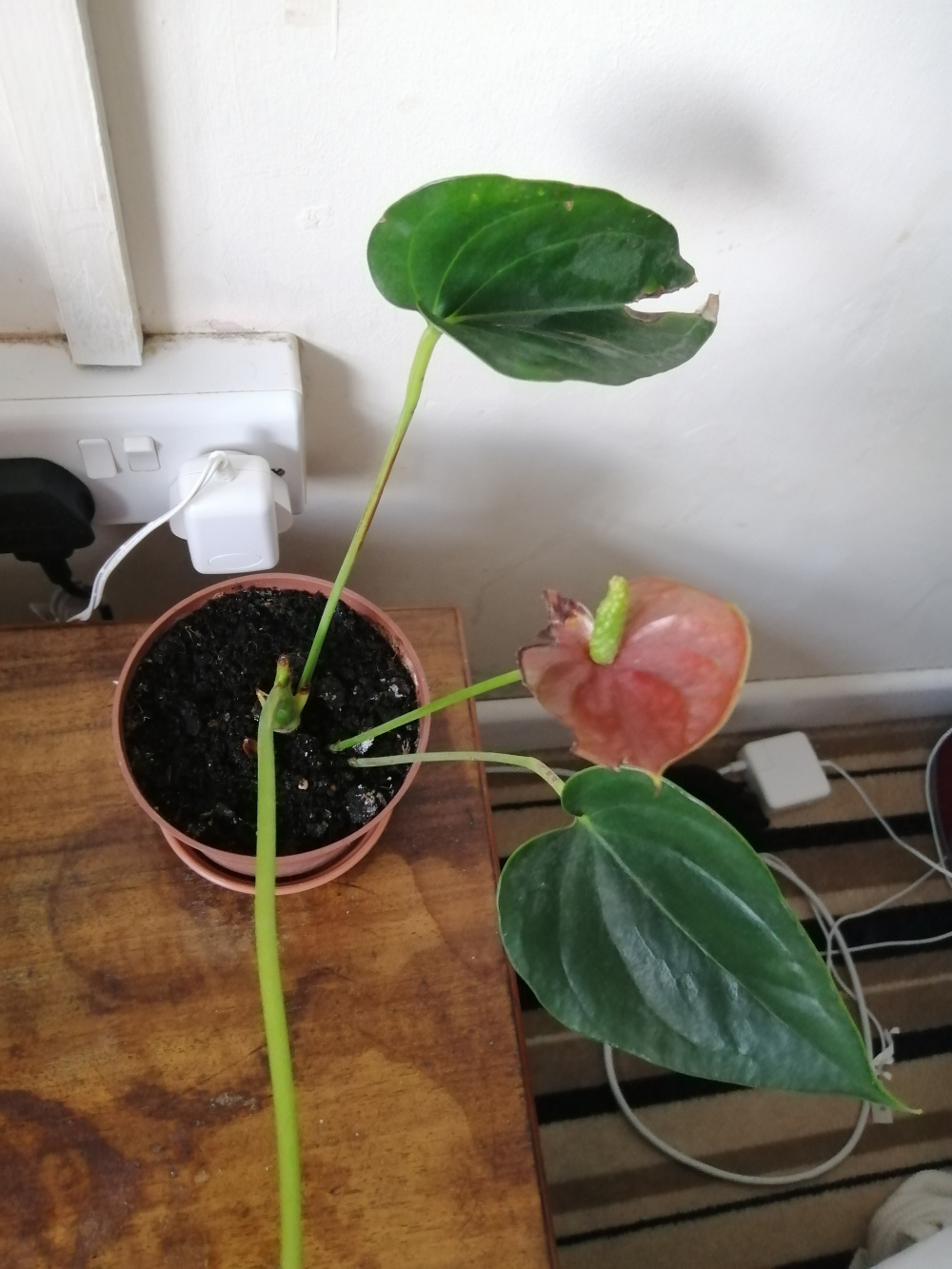 Hi! That is a poorly looking Anthurium. check below website for the best growing tips and how to re-invigorate;