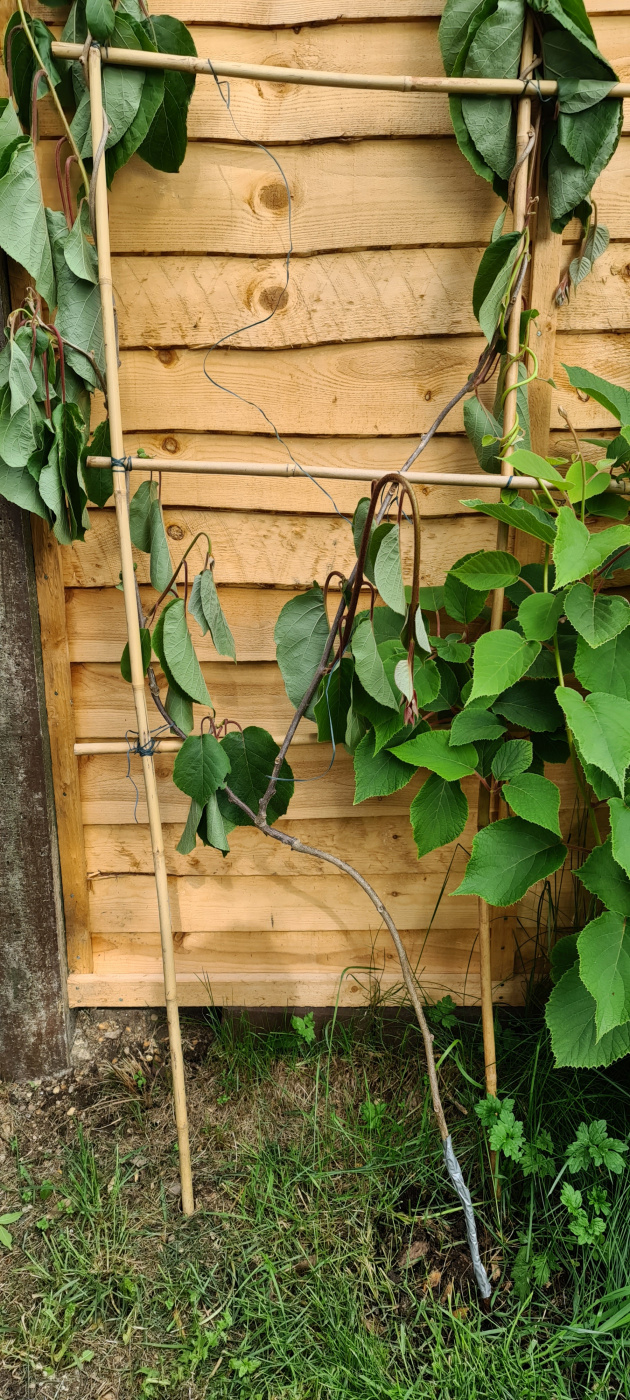 I really would love to save the Kiwi vine so i researched how to do so and ended up using the tape method (i only have duct tape), lucky the two parts of the stem line up perfectly as it is already supported by the trellis and i have joined them back together.