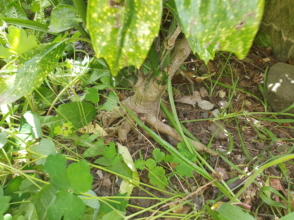 Also around the property there are several laurel plants, a laurel in the back garden grew to around 8m high which I have now trimmed down, and in the front garden they had planted a row of around 10 green/yellow spotted laurels around 1m apart which stayed stunted at around 60cm high max. I know these laurels were planted onto soil which sat over some rubble. Several plum trees were also planted in this same row, which grew well to around 5m high. The laurels have weird looking roots which sit above the ground level, they look a bit like a skeleton's hand.