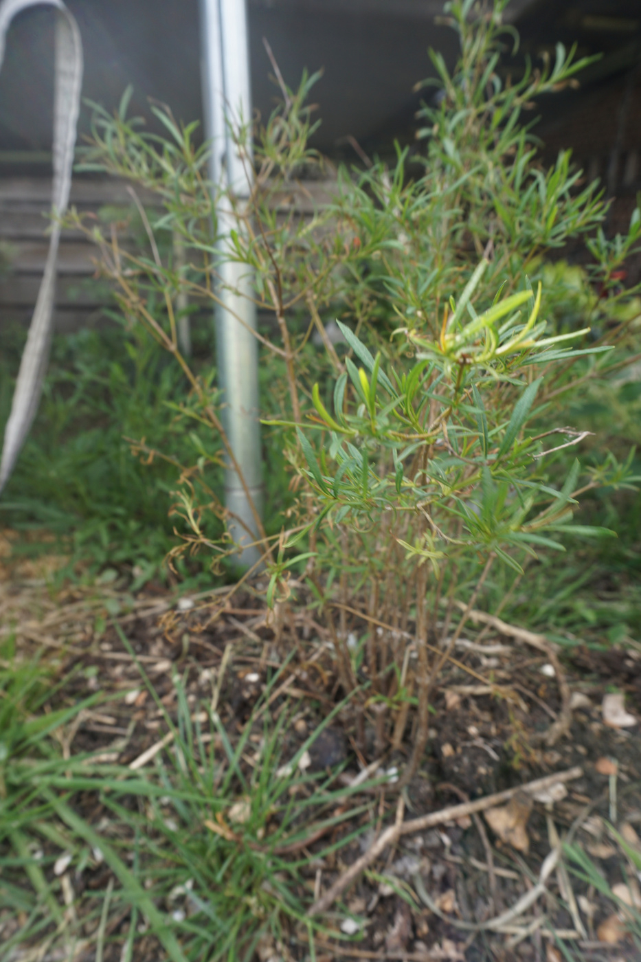 pot on my terrace. Now two weeks later it looks awful. Also seems to be dying back. What is wrong and what can I do? I thought it might be a fungus. There are quite a few plants nearby and all are fine. There is one which doesn't look brilliant and has brown ends but it isn't dying back in the same way.0