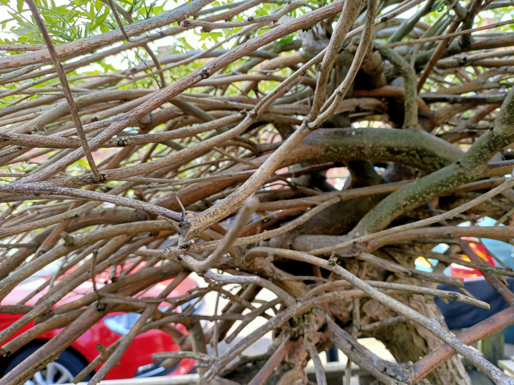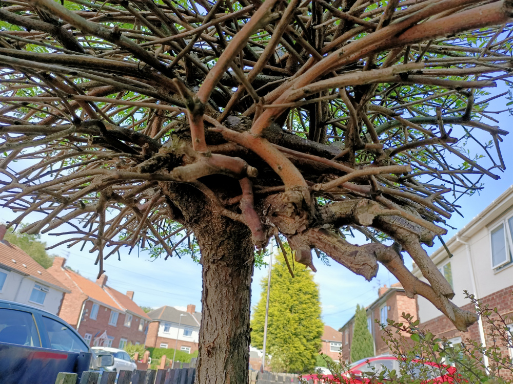 I've added a couple more photos to show the contorted branches below this year's growth.