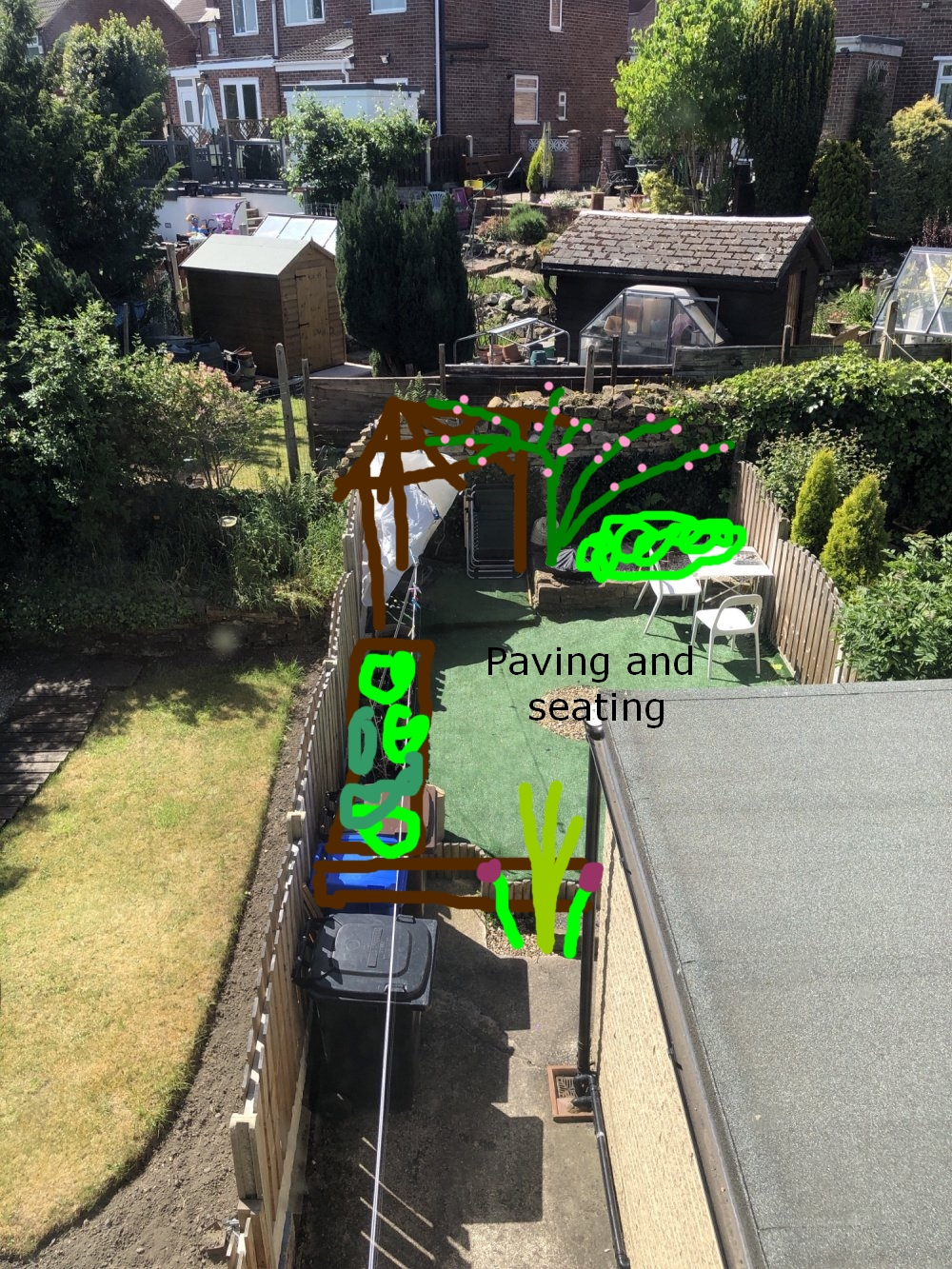 @edhelka The wall is what I was leaning toward already, and getting rid of the little cut out section by the bins. I thought maybe some decking planks or some sleepers might work well. I like the idea of some sort of structure in the top left as either storage or shade or something! and the climbers on the back wall